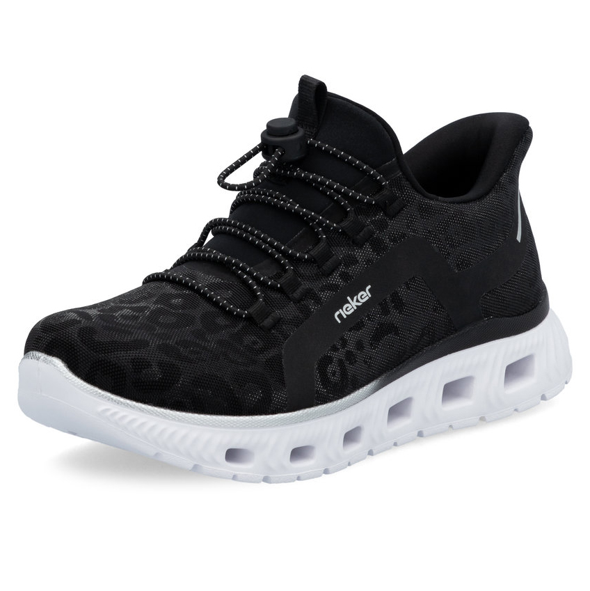 Ez a RIEKER modell tökéletesen ötvözi a modern dizájnt a maximális kényelemmel, így ideális választás mindennapi viseletre. A fekete felsőrész elegáns mintázattal, rugalmas szegéllyel és gumis fűzővel van ellátva, ami optimális illeszkedést és könnyű felvételt biztosít. A könnyű és rugalmas talp kiváló ütéscsillapítást nyújt, és támogatja a láb természetes mozgását, ami különösen hasznos egész napos viselés során. Az egyedi MemoSoft memóriahabos talpbetét tökéletesen alkalmazkodik a láb formájához, és puha lépést biztosít a maximális kényelem érdekében. Az Antistress technológiának köszönhetően a cipők rendkívül könnyűek, rugalmasak, és megfelelő helyet biztosítanak a láb természetes mozgásához, míg a Ready2GO rendszer lehetővé teszi a könnyű felvételt kéz használata nélkül. Ez a modell tökéletes választás azok számára, akik stílusos, ugyanakkor funkcionális és kényelmes lábbelit keresnek mindennapi viseletre.