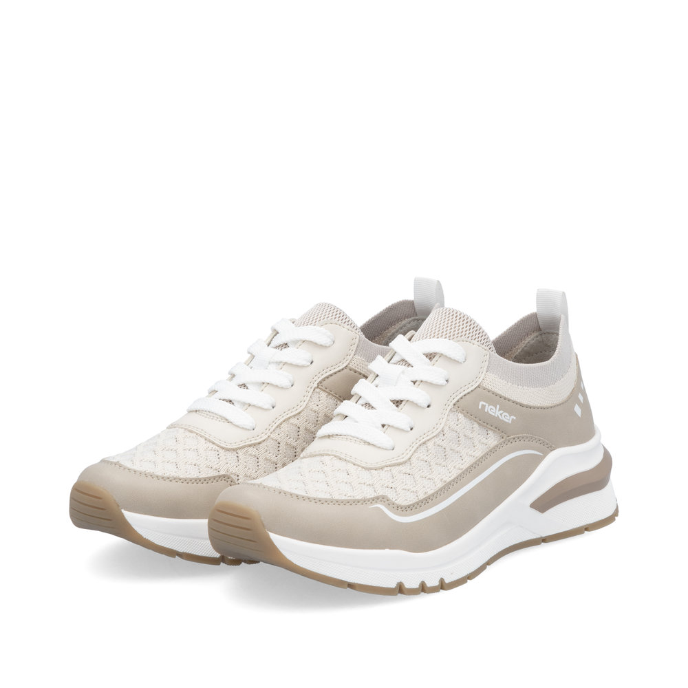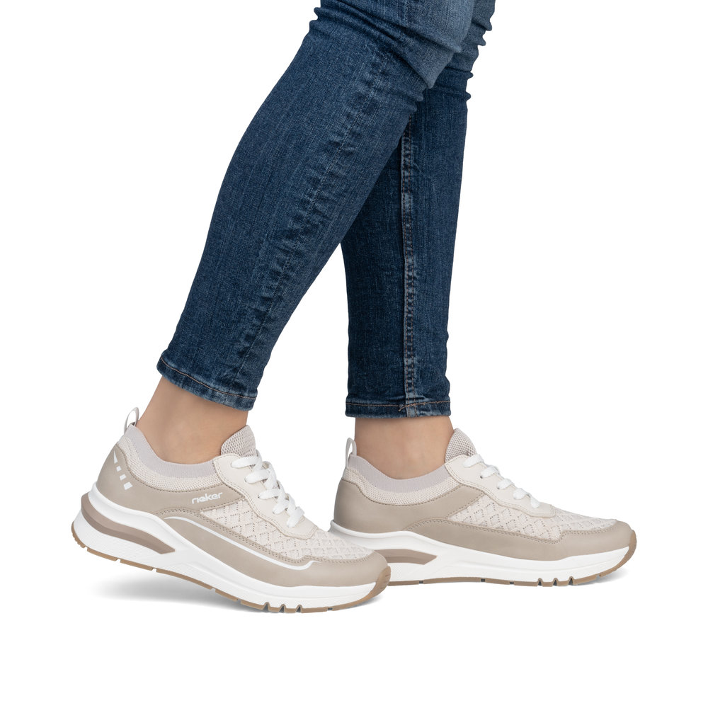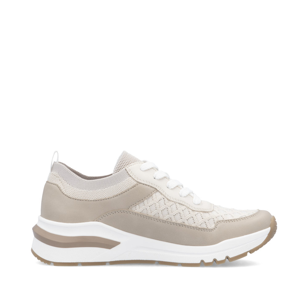 A RIEKER M6609-60 bézs színű női sportcipő tökéletes választás mindennapi viseletre, amely ötvözi a kényelmet és a stílust. A könnyű anyagok és a légáteresztő felsőrész gondoskodnak a kellemes érzetről egész napos használat során. A praktikus fűzőrendszer révén a cipő könnyen igazítható a láb formájához, míg a memóriahabos talpbetét kiváló párnázottságot biztosít járás közben. A modern dizájnt egy könnyű talp teszi teljessé, amely nemcsak esztétikus, hanem hatékonyan csillapítja az ütéseket és támogatja a természetes mozgást. Ez a sportcipő ideális választás szabadidős tevékenységekhez, városi sétákhoz vagy munkába járáshoz, maximális kényelmet és időtálló megjelenést biztosítva.