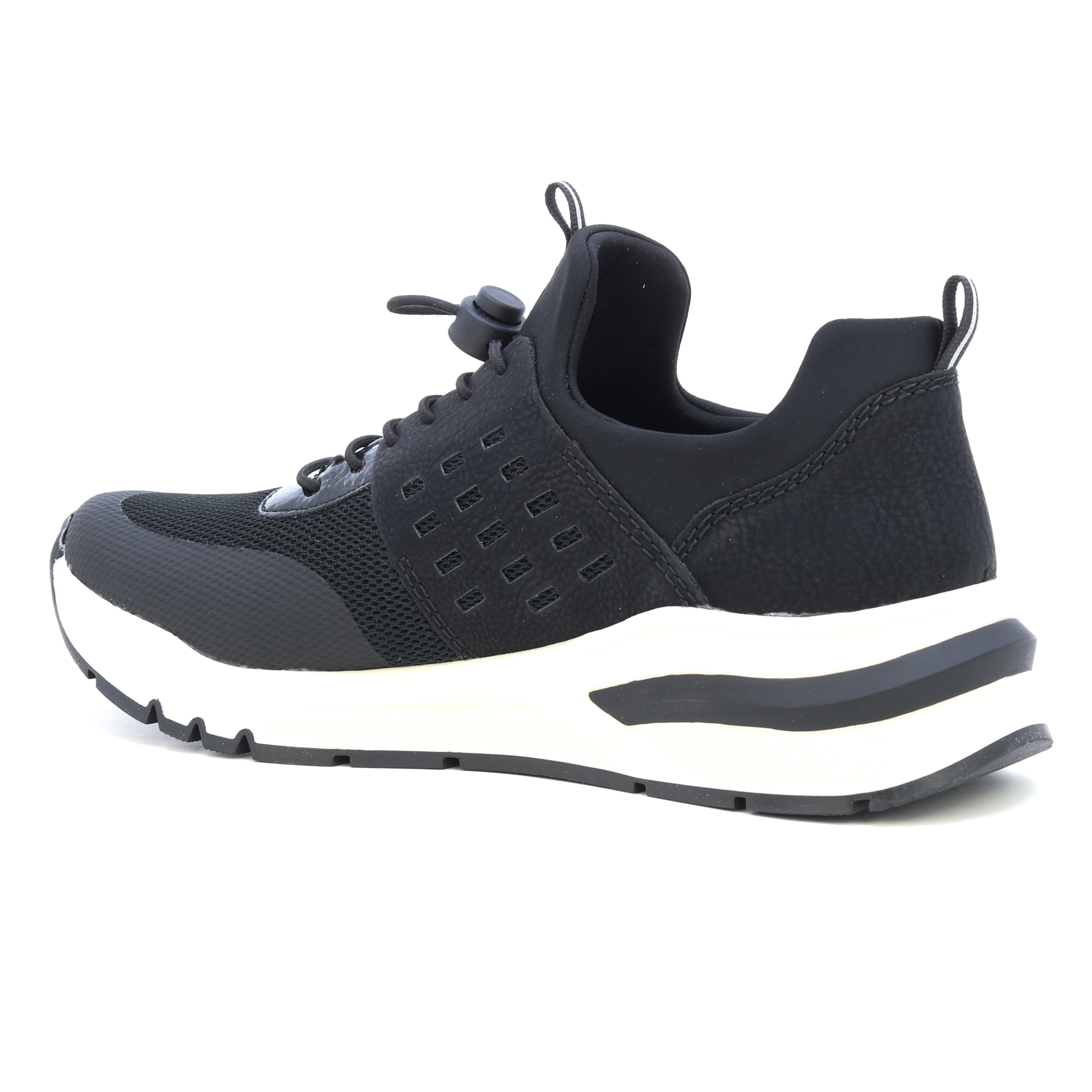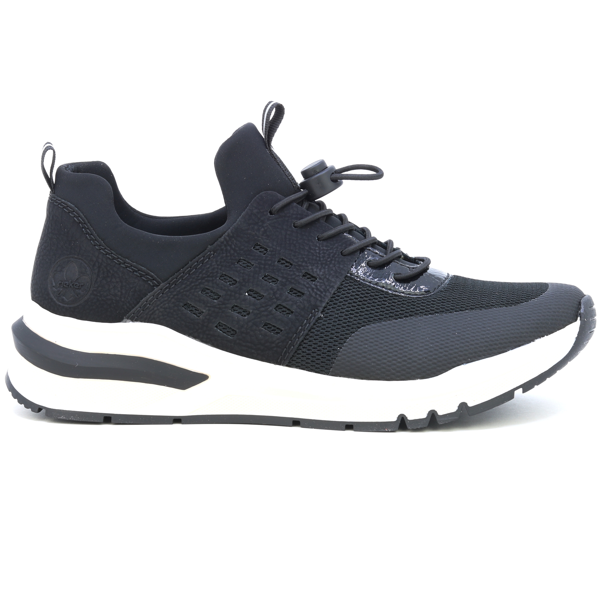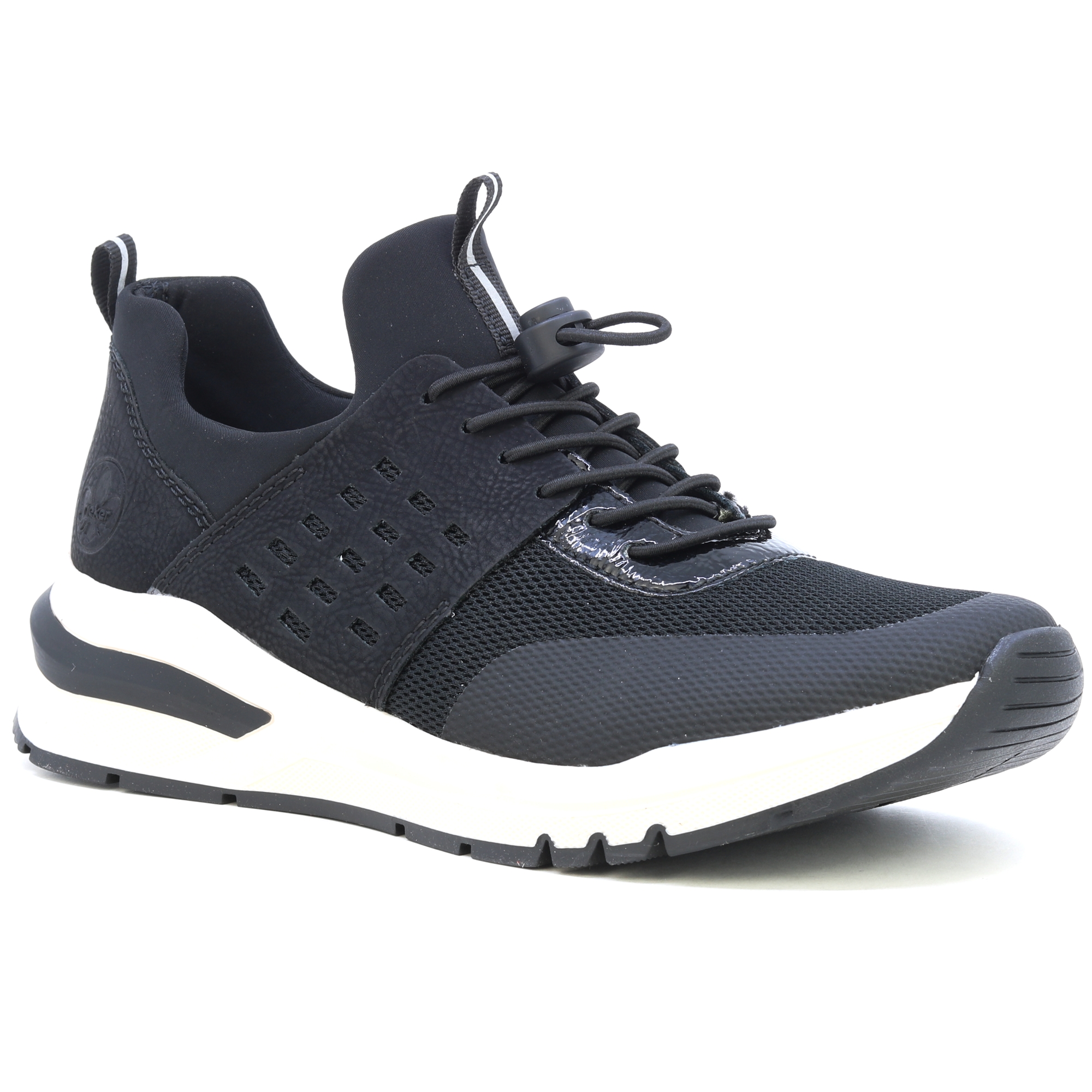 A fekete RIEKER M6651-00 női tornacipő az elegancia és a kényelem tökéletes kombinációját képviseli, amelyet a mindennapi viselet során értékelni fog. A könnyű felépítés és a rugalmas talp biztosítja a kényelmet még hosszabb mozgás közben is, míg a modern dizájn finom részletekkel könnyedén kiegészíti városi vagy hétköznapi öltözékét. A kiváló minőségű anyagok biztosítják a tartósságot és az egyszerű karbantartást, a puha talpbetét maximális kényelmet, a csúszásmentes talp pedig biztonságot nyújt különféle felületeken. Ezek a tornacipők nagyszerű választás minden olyan alkalomra, amikor a stílusos megjelenést a praktikus kényelemmel szeretné kombinálni.