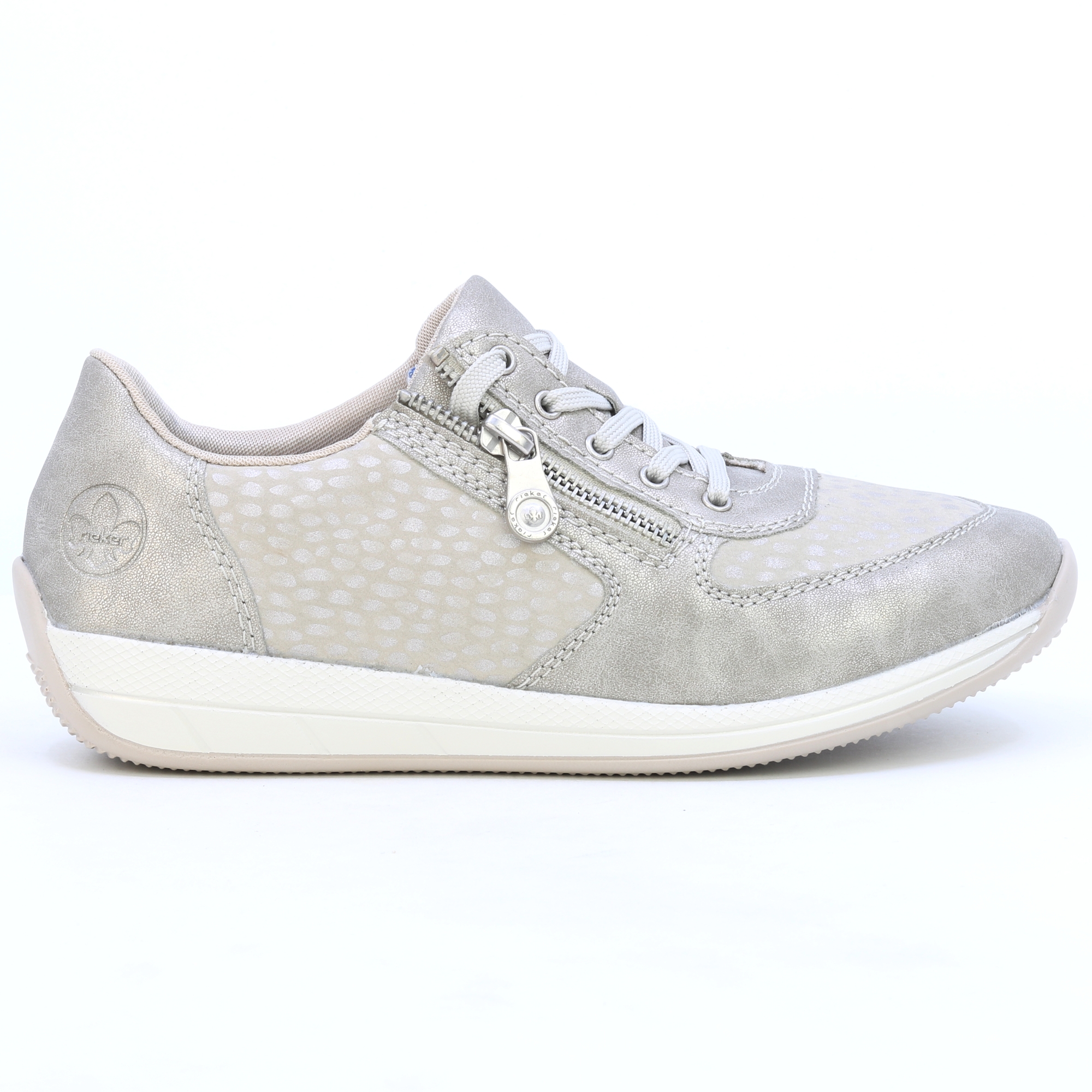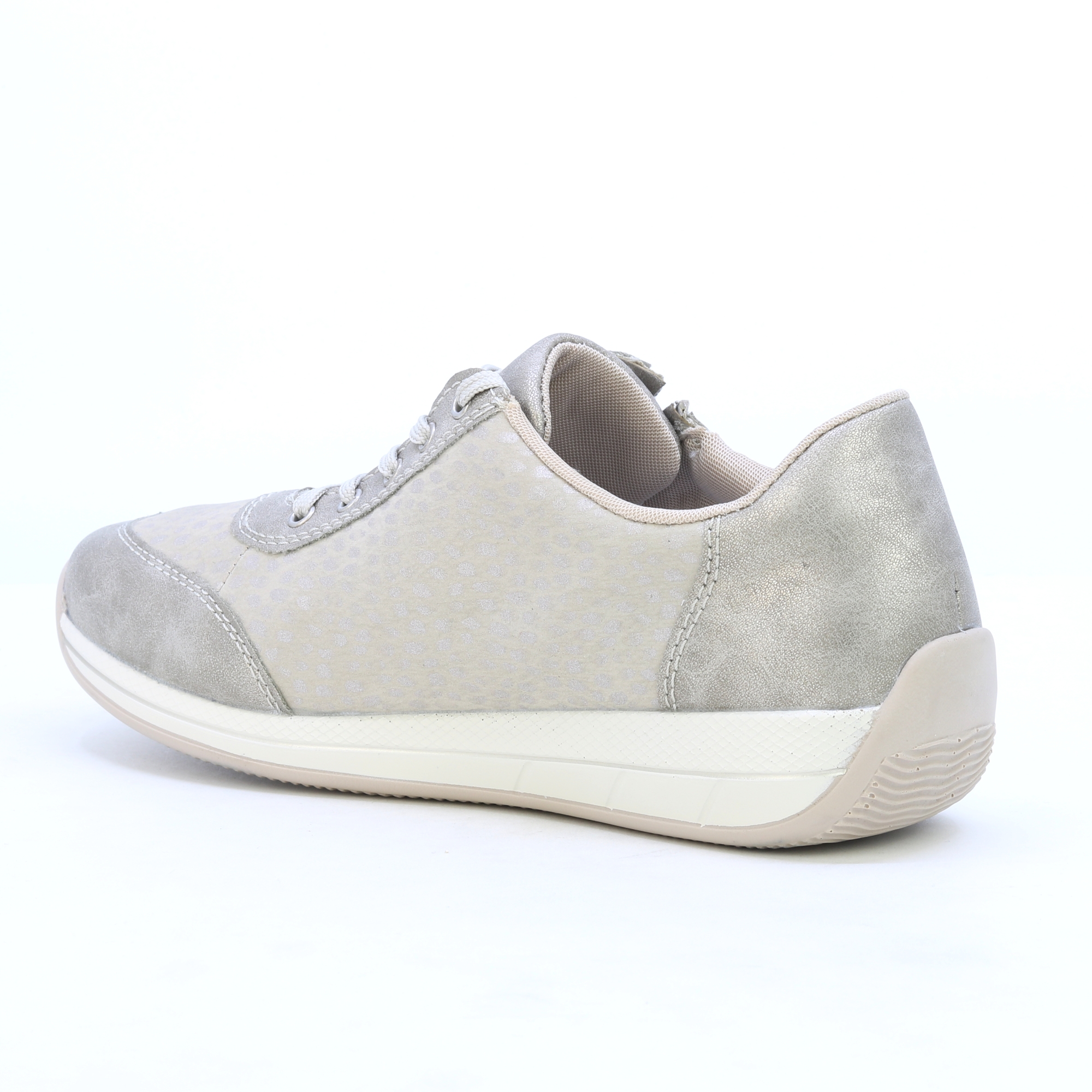 A bézs színű RIEKER N1112-60 női tornacipő a stílus és a kényelem nagyszerű kombinációja. Modern kialakításukat finom részletek egészítik ki, amelyek friss és elegáns megjelenést kölcsönöznek a cipőknek. A praktikus fűzés és cipzár biztosítja a könnyű felhelyezést és a láb formájához való igazítást. Az enyhén megemelt talp nemcsak stabilitást, hanem maximális kényelmet is biztosít az egész napos viselet során. Ezek a tornacipők ideális választás mindennapi tevékenységekhez, városi sétákhoz vagy szabadidős tevékenységekhez.