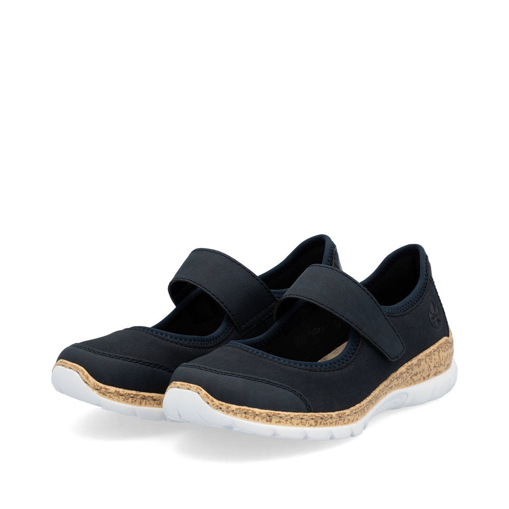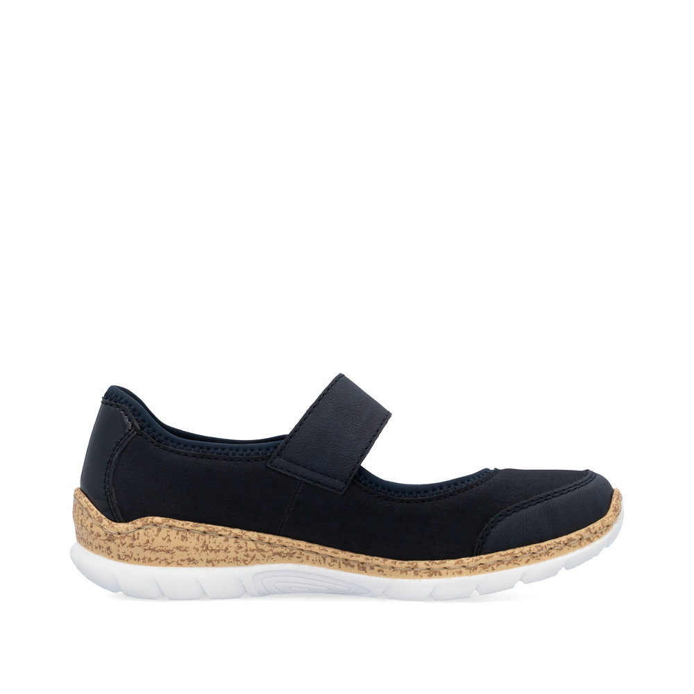 Engedd meg a lábaidnak a maximális kényelmet ezekben az elegáns RIEKER balerinákban, amelyek ötvözik a stílust és a funkcionalitást. A sötétkék felsőrész visszafogott eleganciát sugároz, míg a fényes sarokrész és a diszkrét márkalogó tovább fokozzák a kifinomult megjelenést. A tépőzáras pánt a rüsztön lehetővé teszi a könnyű felvételt és az egyéni illeszkedést. A puha talpbetét egész napos kényelmet biztosít, míg az egyedi kialakítású talp hatékonyan tompítja az ütődéseket és stabilitást ad. Ezek a balerinák tökéletes választást jelentenek azoknak a nőknek, akik stílusos, kényelmes és praktikus lábbelit keresnek a mindennapokra.
