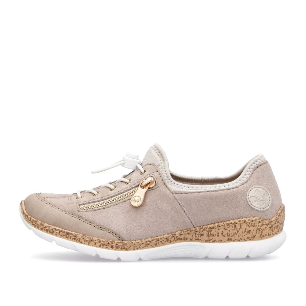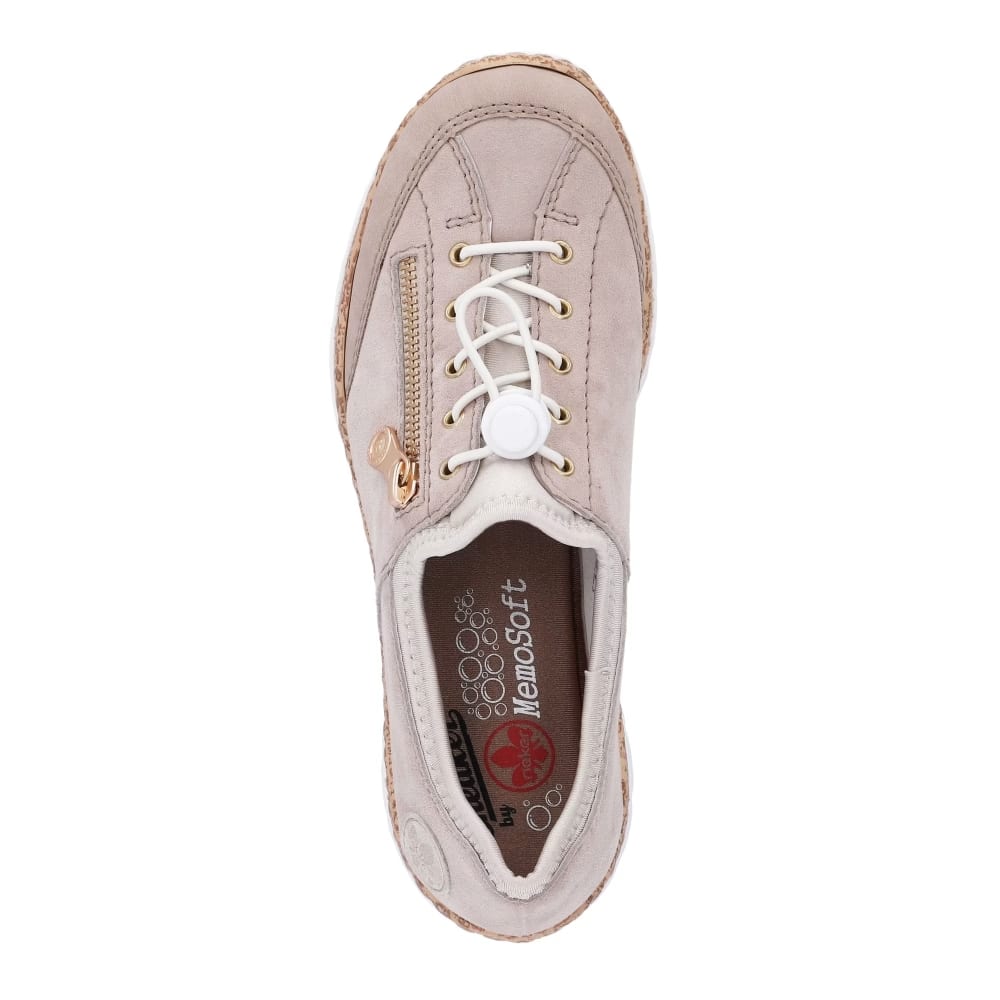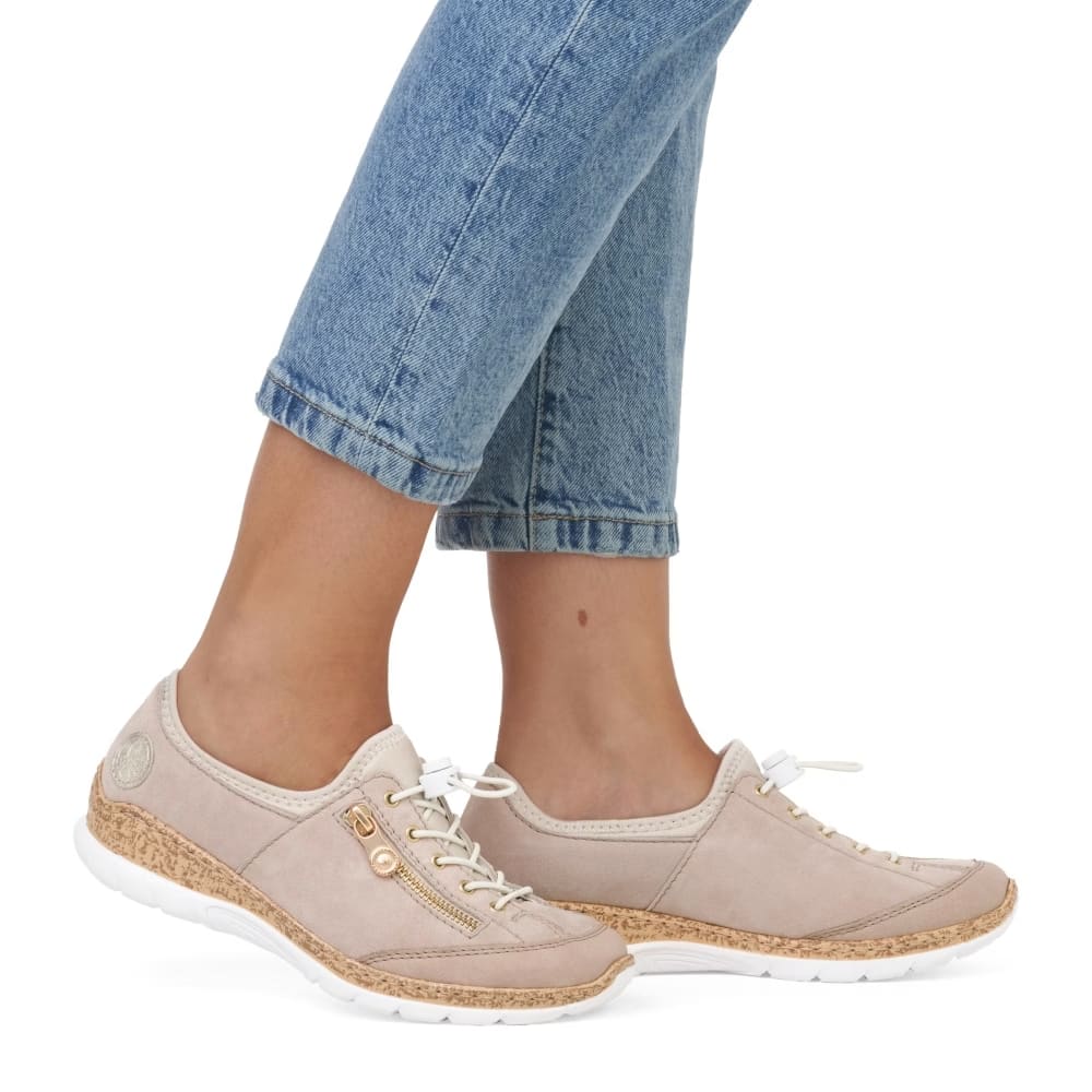 Ezek a RIEKER női tornacipők a természetes velúr anyagának köszönhetően kivételesek. Az elegáns dizájnt a márka logója, dekoratív cipzára és bélelt parafa-utánzattal egészíti ki, amely azonnal felkelti a figyelmet. A könnyű felhelyezésről a rugalmas gumírozás gondoskodik, mely szükség szerint finoman összehúzható. Ha elegáns és kényelmes cipőt keres, ez a modell a megfelelő választás az Ön számára. Technológia: Antistressz: Könnyű és rugalmas talp, amely elnyeli az ütéseket és alkalmazkodik a láb formájához a maximális kényelem érdekében. MemoSoft: Memóriahabos talpbetét, amely puhítja a lábat és alkalmazkodik a láb formájához.