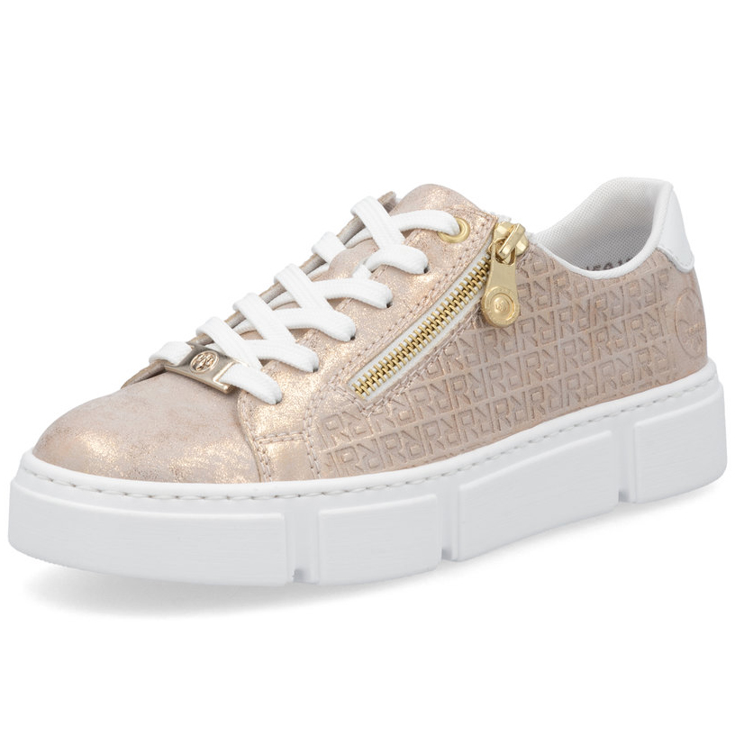 Ezek a különleges RIEKER sportcipők pasztell rózsaszín árnyalatokat ötvöznek finom fémes csillogással és egyedi mintázattal, ami elegáns és egyedi megjelenést kölcsönöz nekik. A praktikus fűzőnek köszönhetően könnyen a lábformához igazíthatók, míg a rüsztön található cipzár gyors és kényelmes felhúzást biztosít. A bőr talpbetét maximális kényelmet és támogatást nyújt egész napos viselet során, míg a rugalmas talp hatékonyan csillapítja az ütődéseket és könnyed járást biztosít. Ez a modell tökéletes választás azoknak a nőknek, akik stílusos és kényelmes cipőt keresnek mindennapi viseletre.