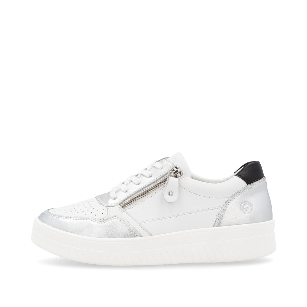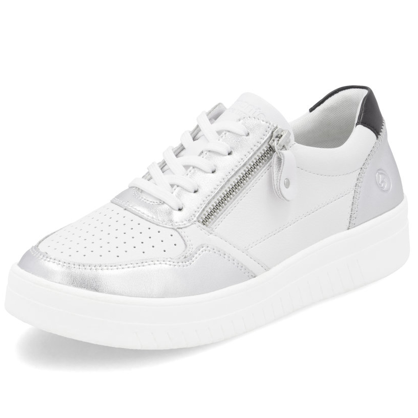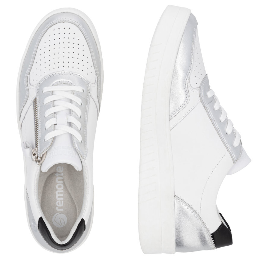A REMONTE lábbeli a RIEKER márka magasabb kategóriája, amely a felhasznált anyagok kiváló minőségéről ismert. A női sportcipők azonnal felkeltik a figyelmet, mivel a fehér felsőrészt figyelemfelkeltő fémes részletek díszítik. A cipő könnyű felhúzását a külső oldalon található funkcionális cipzár segíti, és a fűzők segítségével tökéletesen igazíthatja a cipőt az Ön igényeihez. A kényelem minden lépésnél biztosított a puha, kivehető talpbetéttel, amely egész napos viseletet tesz lehetővé. Ezzel a modellel könnyedén kombinálhatja például hátizsákjainkat a széles választékunkból. A Remonte Soft technológia, amely egy légáteresztő anyagból készült egyedülálló talpbetétet jelent, segít a folyamatos kényelem biztosításában. A Lite'n Soft technológia maximális kényelmet biztosít a könnyű talp, a rendkívül kényelmes anyagok és a komfortos talpbetét kombinációjának köszönhetően.