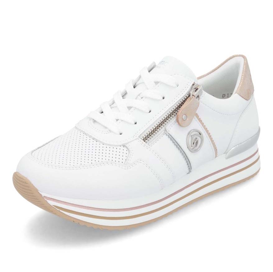 A REMONTE cipők, a RIEKER prémium kategóriás vonala, kiváló minőségű anyagokból készülnek, és precíz kidolgozásukkal tűnnek ki. Ez az elegáns tornacipő egyszerű, mégis időtálló dizájnjával hódít. A fehér felsőrész finoman kiegészül kontrasztos, fémes csillogású elemekkel, amelyek elegáns megjelenést biztosítanak. A fűzős és cipzáras kialakítás megkönnyíti a felhúzást és tökéletes illeszkedést nyújt a láb formájához. A puha, kivehető talpbetét minden lépésnél maximális kényelmet biztosít. Ezek a stílusos cipők könnyen kombinálhatók bármilyen öltözékkel, legyen szó munkáról vagy egy kellemes sétáról.