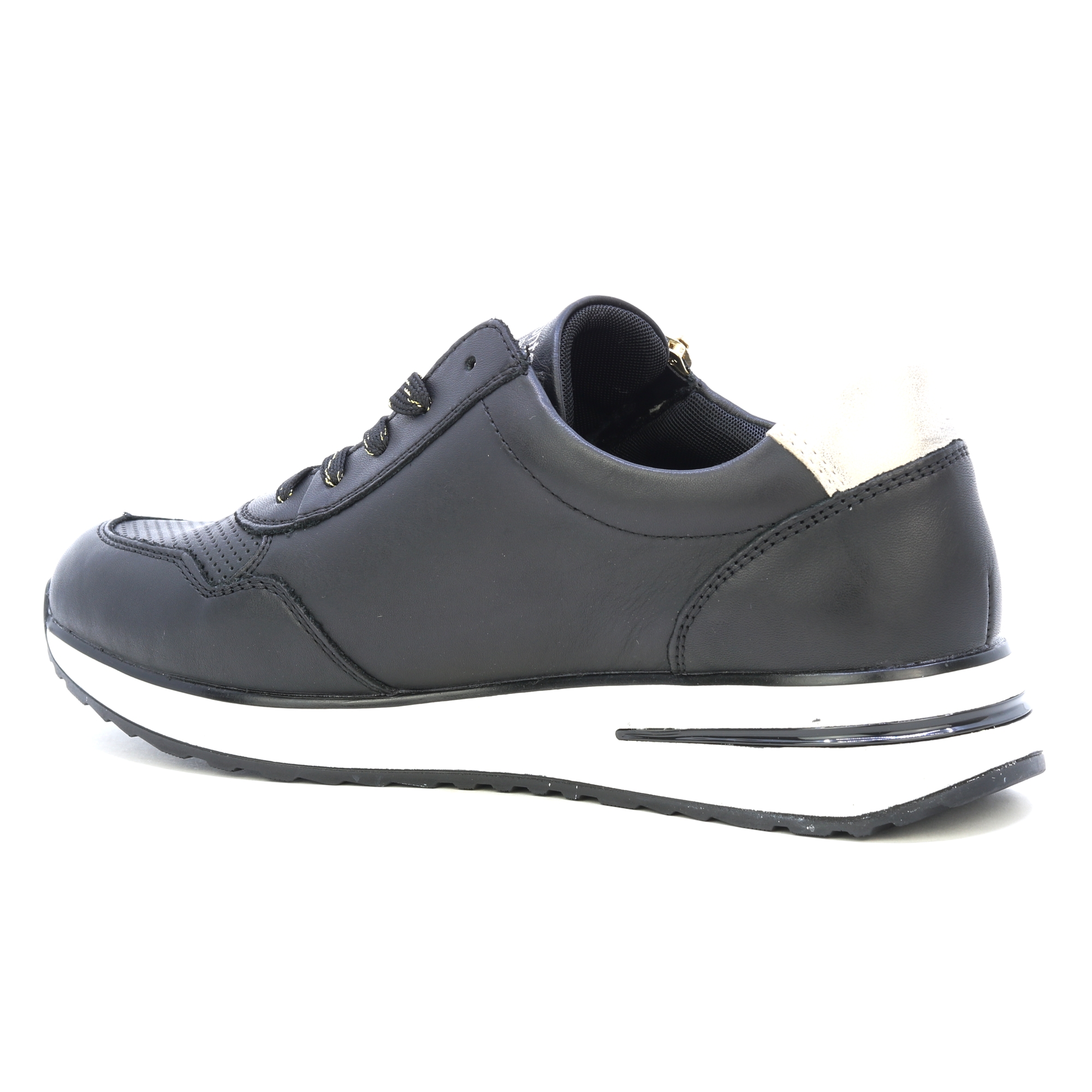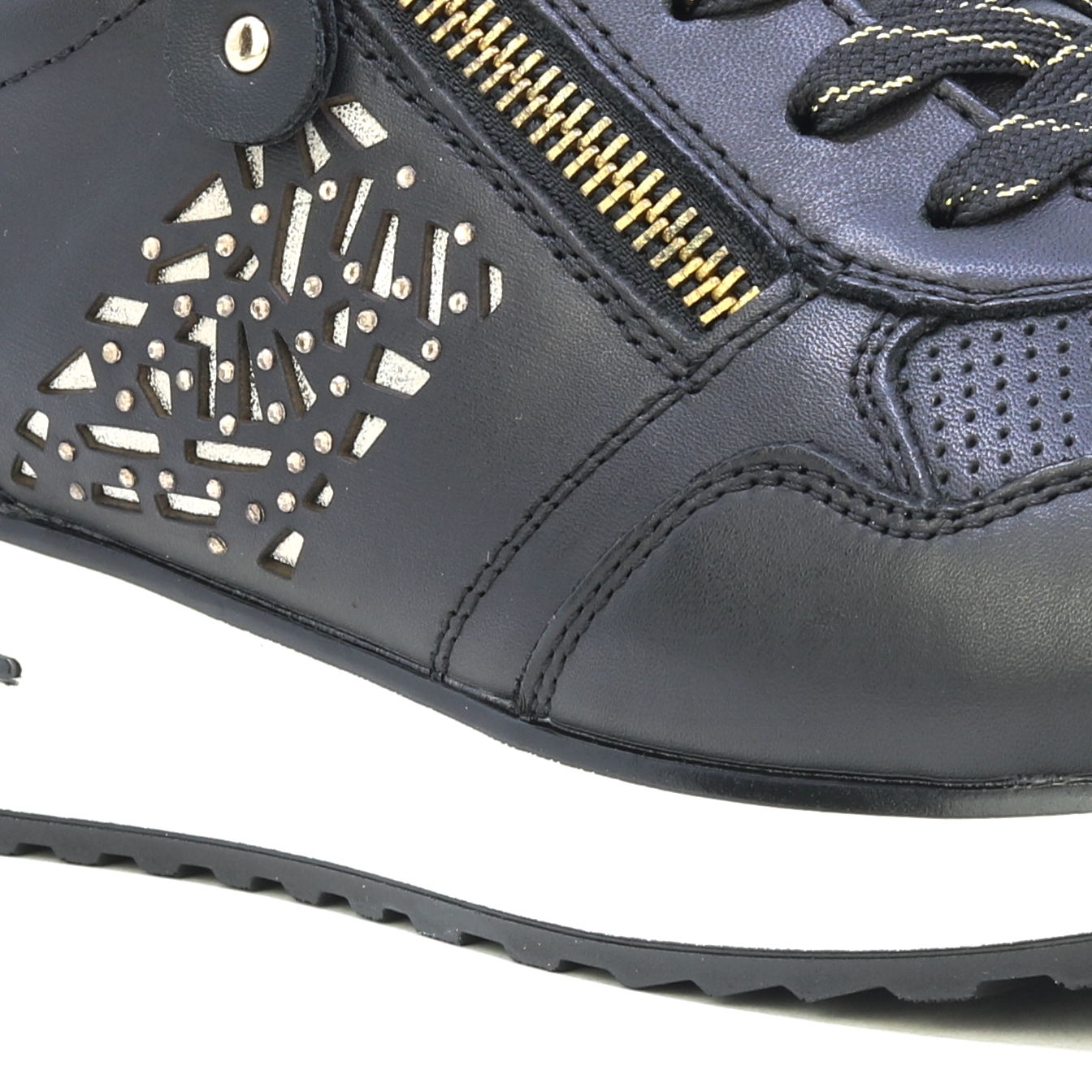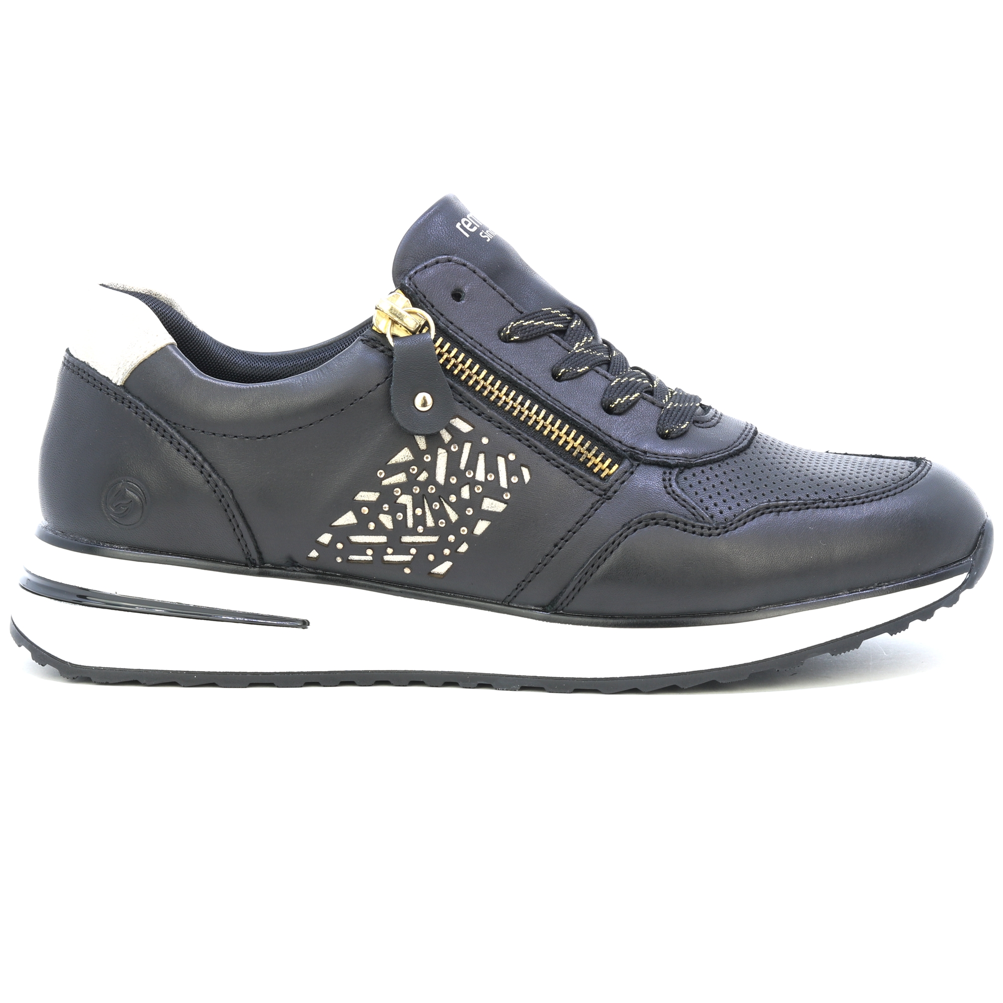 REMONTE cipő - ez a RIEKER márka magasabb vonala, ezt a cipőt a felső anyagok kiváló kombinációja jellemzi. Ezek a fekete RIEKER cipők a divatos elegancia és kényelem nagyszerű képviselői. Az oldalrész lenyűgöző elemével és az elülső részének finom perforációjával egyedi design elemet alkot. A fűzés és a cipzár kombinációja megkönnyíti a felhelyezést és a lábhoz való alkalmazkodást. A puha, kivehető talpbetét kényelmet biztosít és alkalmazkodik a láb formájához. Ez azt jelenti, hogy személyre szabhatja a cipőt egyéni igényei szerint. Ezek az összetéveszthetetlen RIEKER cipők ideális választás azoknak a nőknek, akik a jellegzetes dizájn és kényelem kombinációját keresik. Technológia: Remonte Soft – egyedülálló, lélegző anyagból készült talpbetét, mely formájával és anyagával komfortérzetet biztosít az egész napos viselet során. Ez a cipő kivehető talpbetéttel van felszerelve. Lite'n Soft - a könnyű talp és a puha talpbetét kombinációja biztosítja a felhőkön járás érzését.