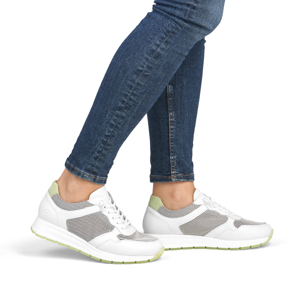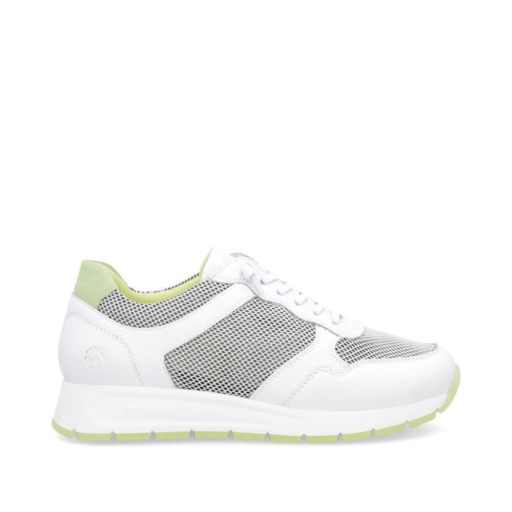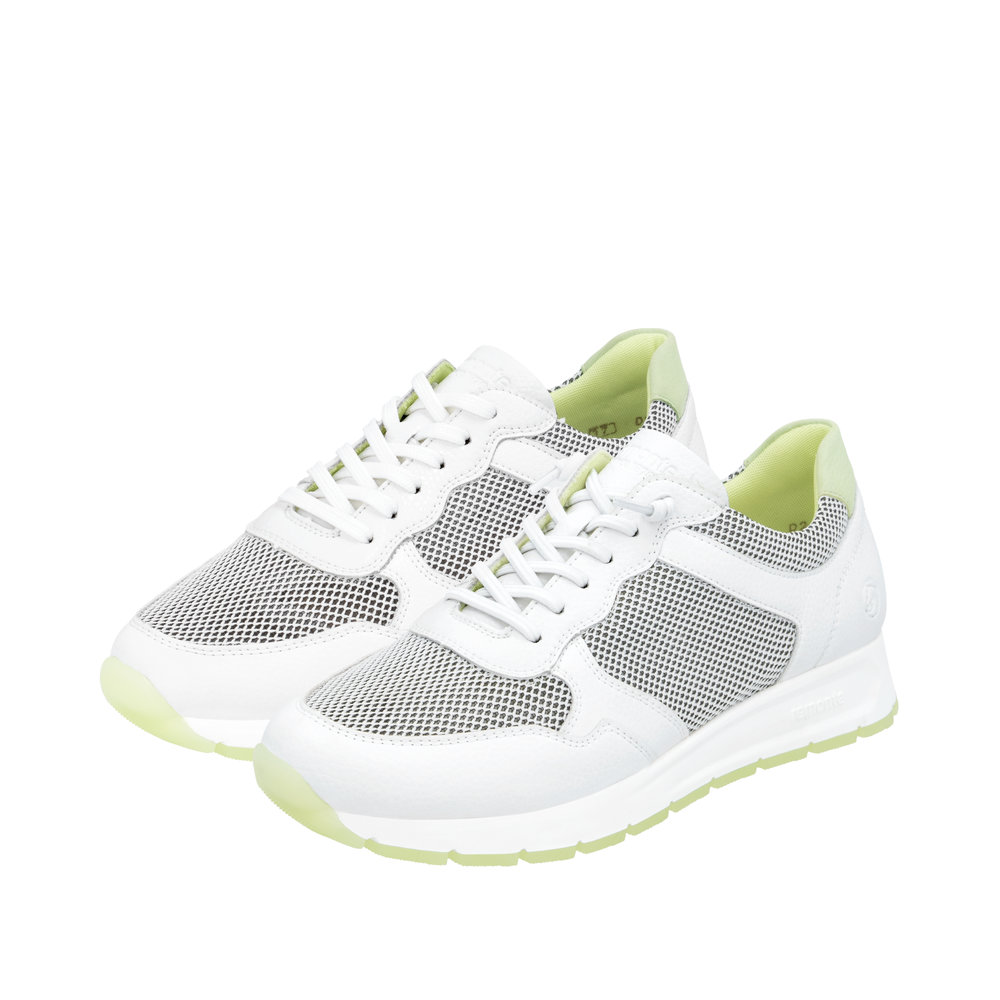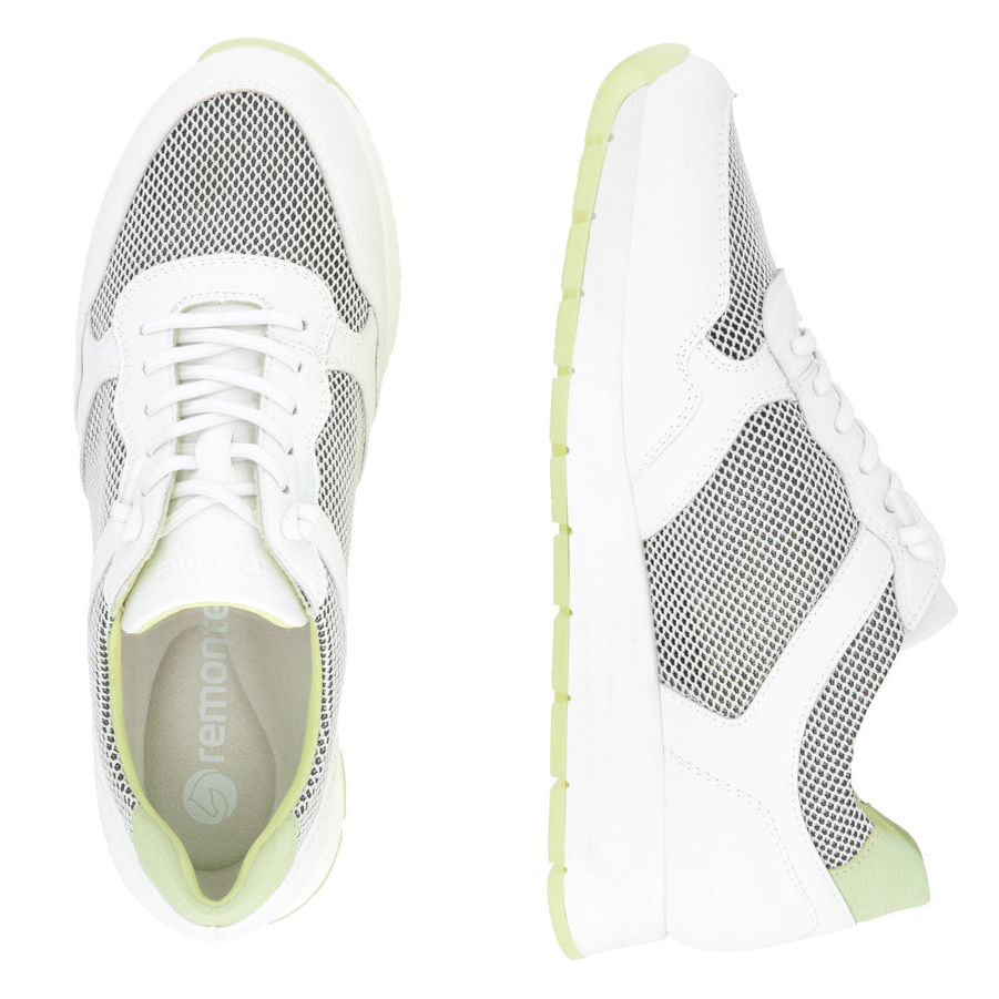 A REMONTE cipők a RIEKER márka prémium vonalát képviselik, és kiemelkednek a kiváló minőségű felső anyagok kombinációjával. A bőr és az oldalakon található szellős textil anyag párosítása nemcsak vonzó megjelenést, hanem kivételes kényelmet és légáteresztést is biztosít. A rugalmas gumipánt segítségével a cipő könnyen felvehető, de a csomagban található fehér fűzőkkel hagyományos fűzést is választhatsz. A rugalmas talp gondosan kidolgozott részletekkel emeli ki a cipő modern stílusát, míg a REMONTE Soft anatómiailag formázott, kivehető talpbetét egész napos kényelmet nyújt. Ezek a cipők tökéletesen ötvözik a divatos megjelenést és a maximális kényelmet kompromisszumok nélkül.