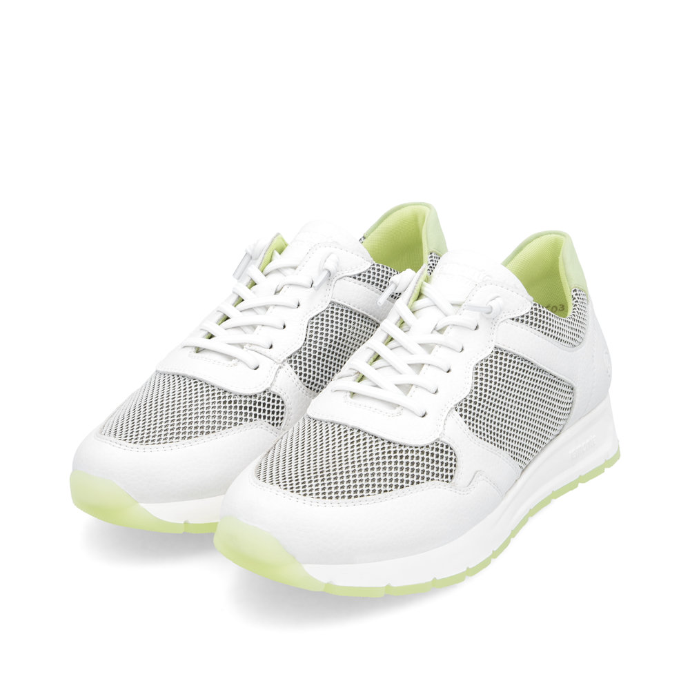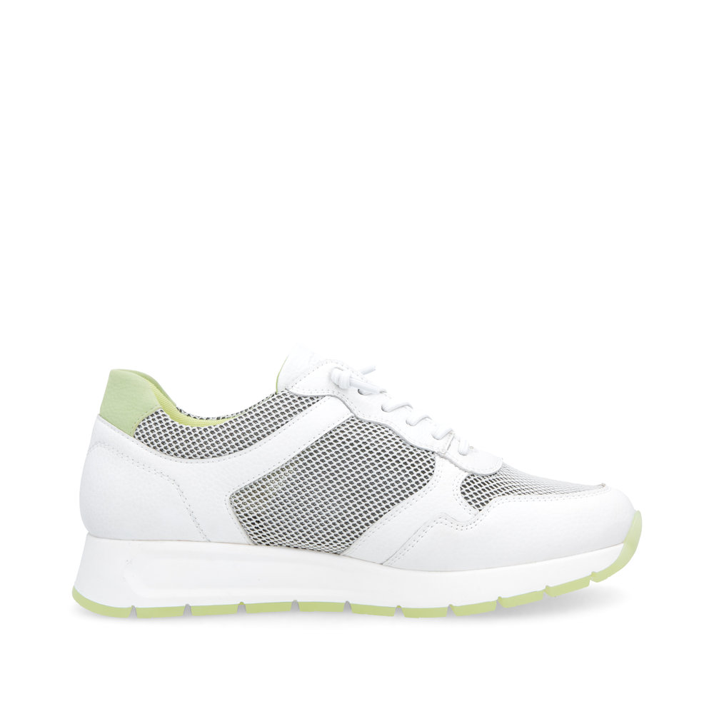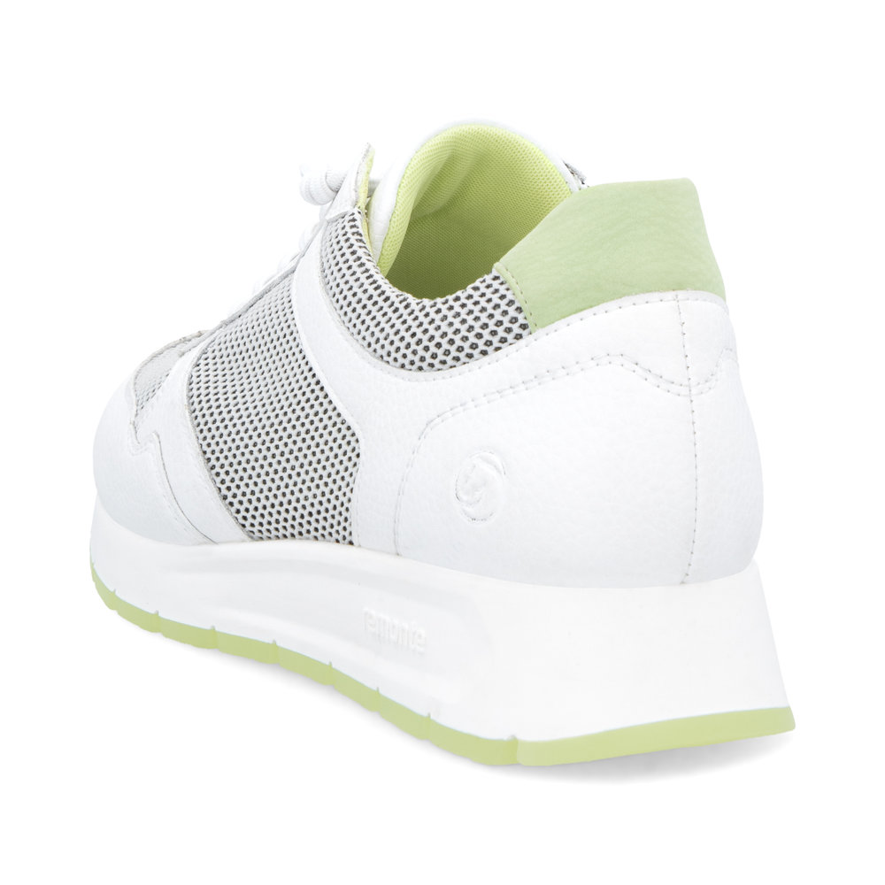 A REMONTE cipők a RIEKER márka prémium vonalát képviselik, és kiemelkednek a kiváló minőségű felső anyagok kombinációjával. A bőr és az oldalakon található szellős textil anyag párosítása nemcsak vonzó megjelenést, hanem kivételes kényelmet és légáteresztést is biztosít. A rugalmas gumipánt segítségével a cipő könnyen felvehető, de a csomagban található fehér fűzőkkel hagyományos fűzést is választhatsz. A rugalmas talp gondosan kidolgozott részletekkel emeli ki a cipő modern stílusát, míg a REMONTE Soft anatómiailag formázott, kivehető talpbetét egész napos kényelmet nyújt. Ezek a cipők tökéletesen ötvözik a divatos megjelenést és a maximális kényelmet kompromisszumok nélkül.