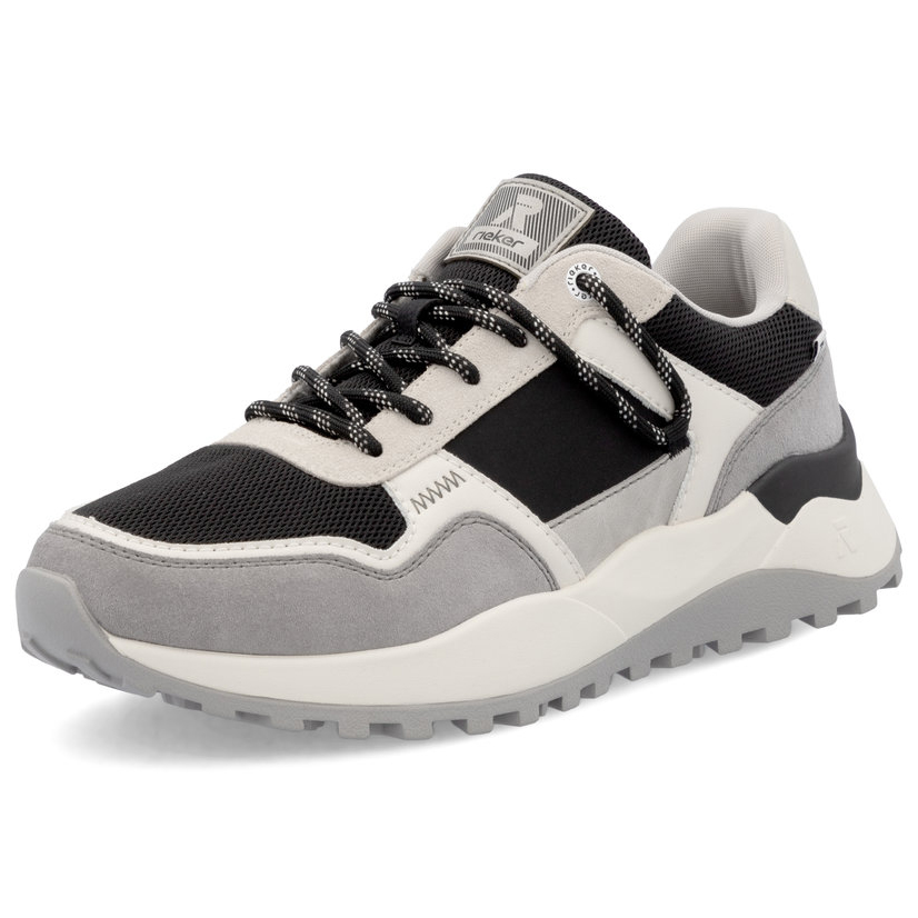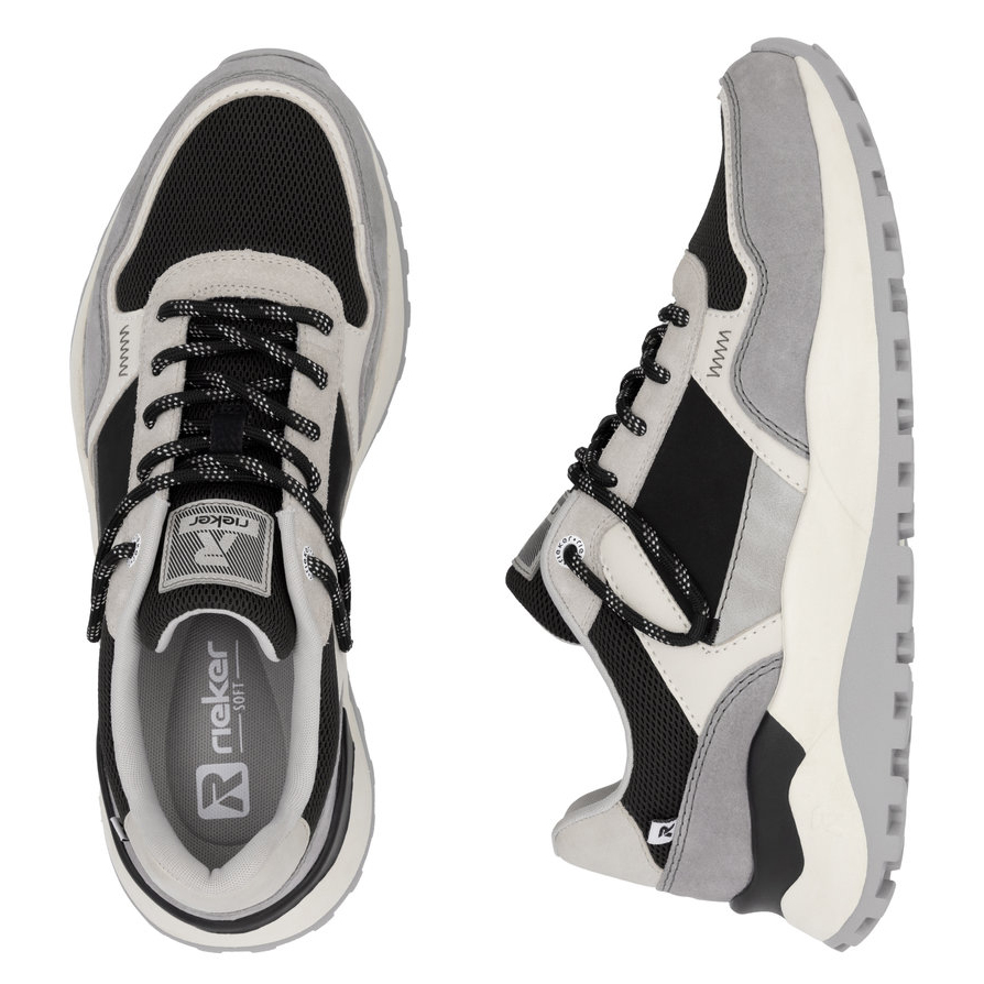 A RIEKER Sport cipők a modern megjelenés és a maximális kényelem tökéletes kombinációját kínálják. Az egyedi szín- és anyaghasználat sportos, mégis elegáns stílust teremt, amely minden lépésnél megmutatkozik. A fűzős kialakítás biztosítja a tökéletes illeszkedést, míg a kivehető, puha talpbetét és a Rieker Soft technológia egész napos kényelmet nyújt. Az Antistress rendszer könnyedséget, rugalmasságot és kiváló ütéscsillapítást biztosít, ami kellemes járásélményt eredményez. A dizájnos talprész egyszerre támogatja a lábat és emeli ki a cipő sportos karakterét. Tökéletes választás azoknak, akik modern megjelenést keresnek kompromisszummentes kényelemmel párosítva.