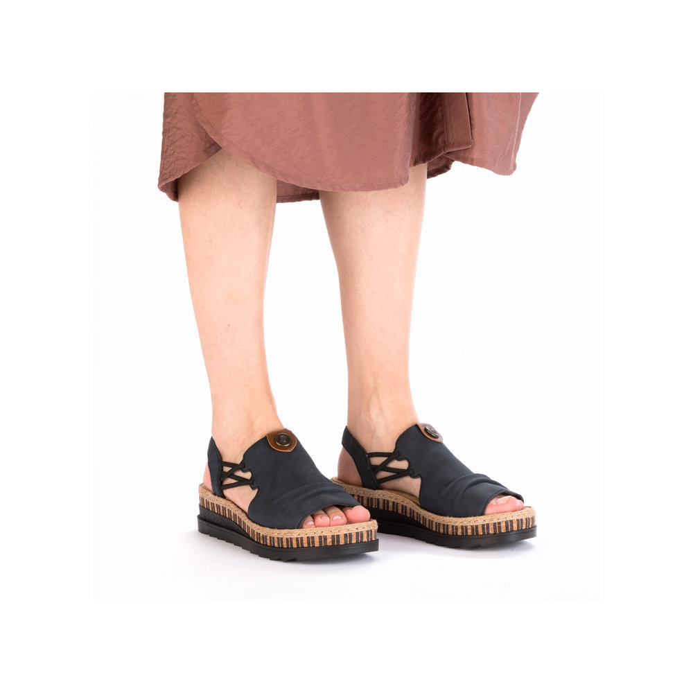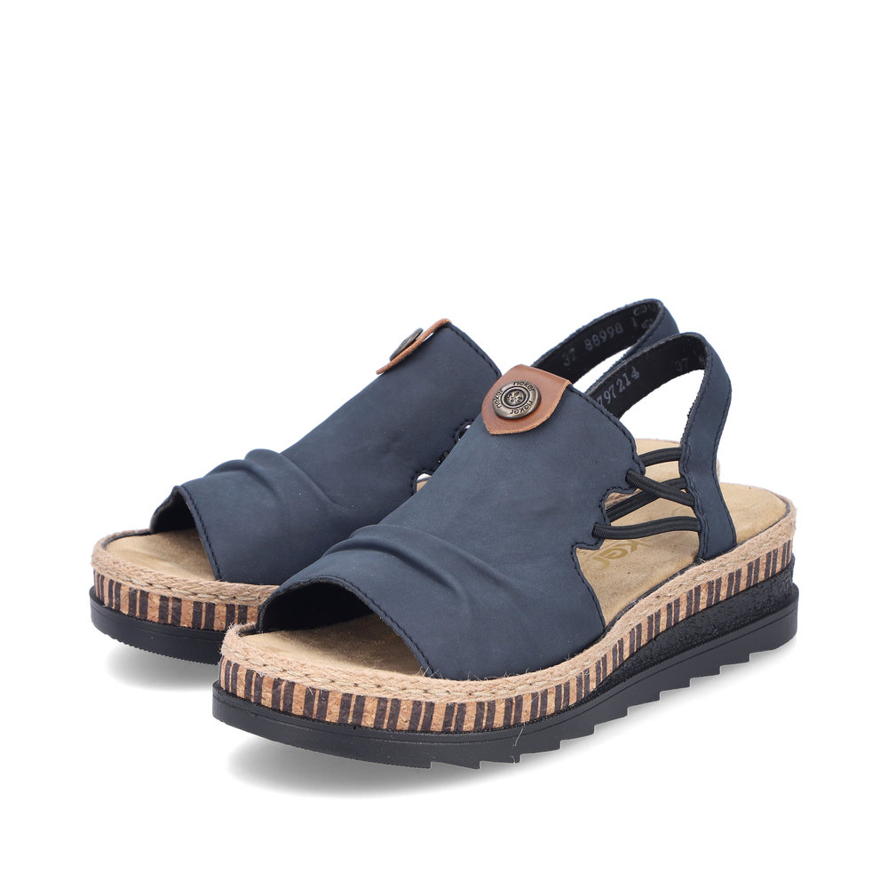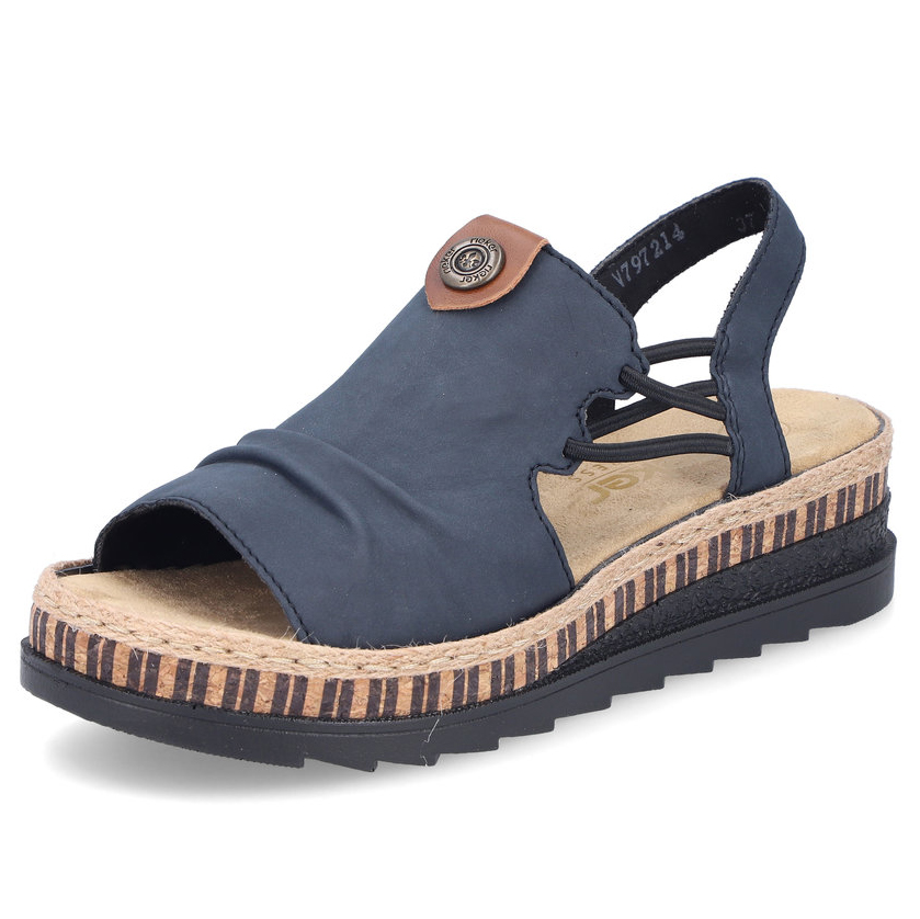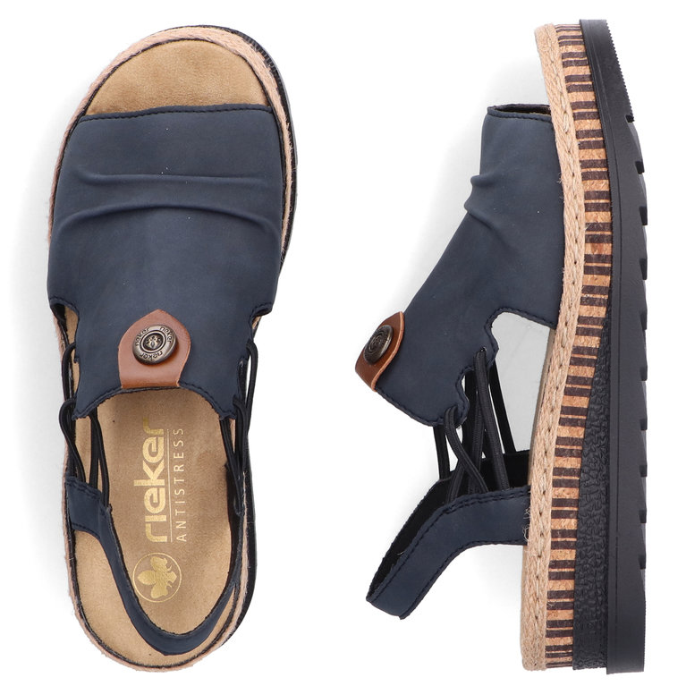 A RIEKER V7972-14 női szandál elegáns kék színben tökéletes választás azoknak a hölgyeknek, akik a kényelmet és a divatos megjelenést keresik. Minőségi felsőrészét finom részletek díszítik, amelyek modern megjelenést kölcsönöznek a cipőnek, míg a rugalmas pántok könnyű felvételt és tökéletes illeszkedést biztosítanak. A puha talpbetét és a könnyű, rugalmas talp garantálja a maximális kényelmet egész napos viselet során is. Ez a modell tökéletesen kombinálható nyári ruhákkal, szoknyákkal vagy lezser nadrágokkal, és ideális választás városi sétákhoz vagy nyaraláshoz. Az Antistress technológia biztosítja a könnyedséget, rugalmasságot és a kiváló ütéselnyelést járás közben.