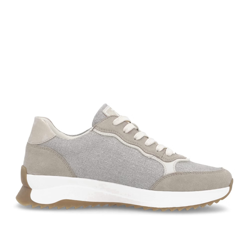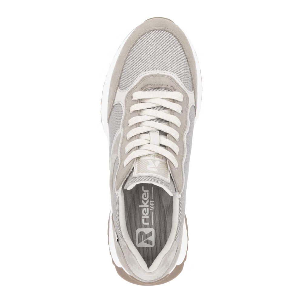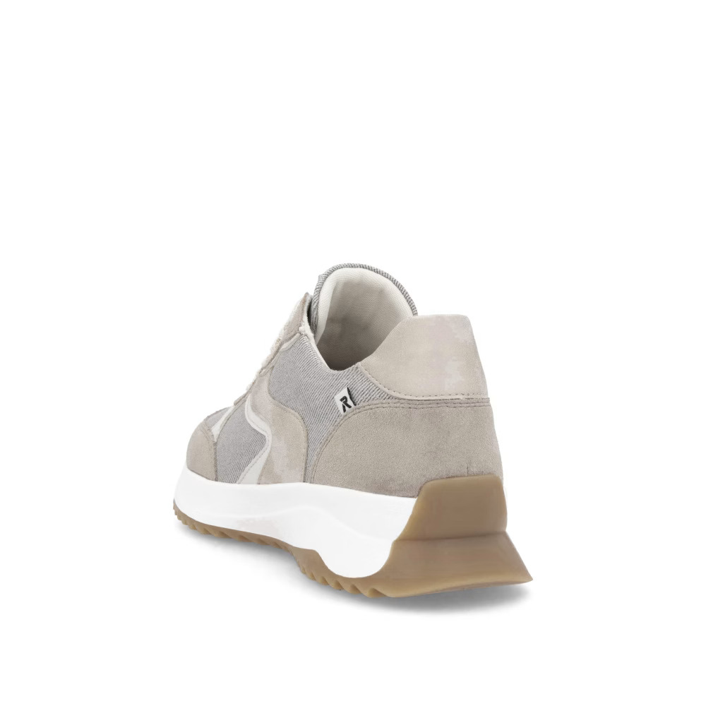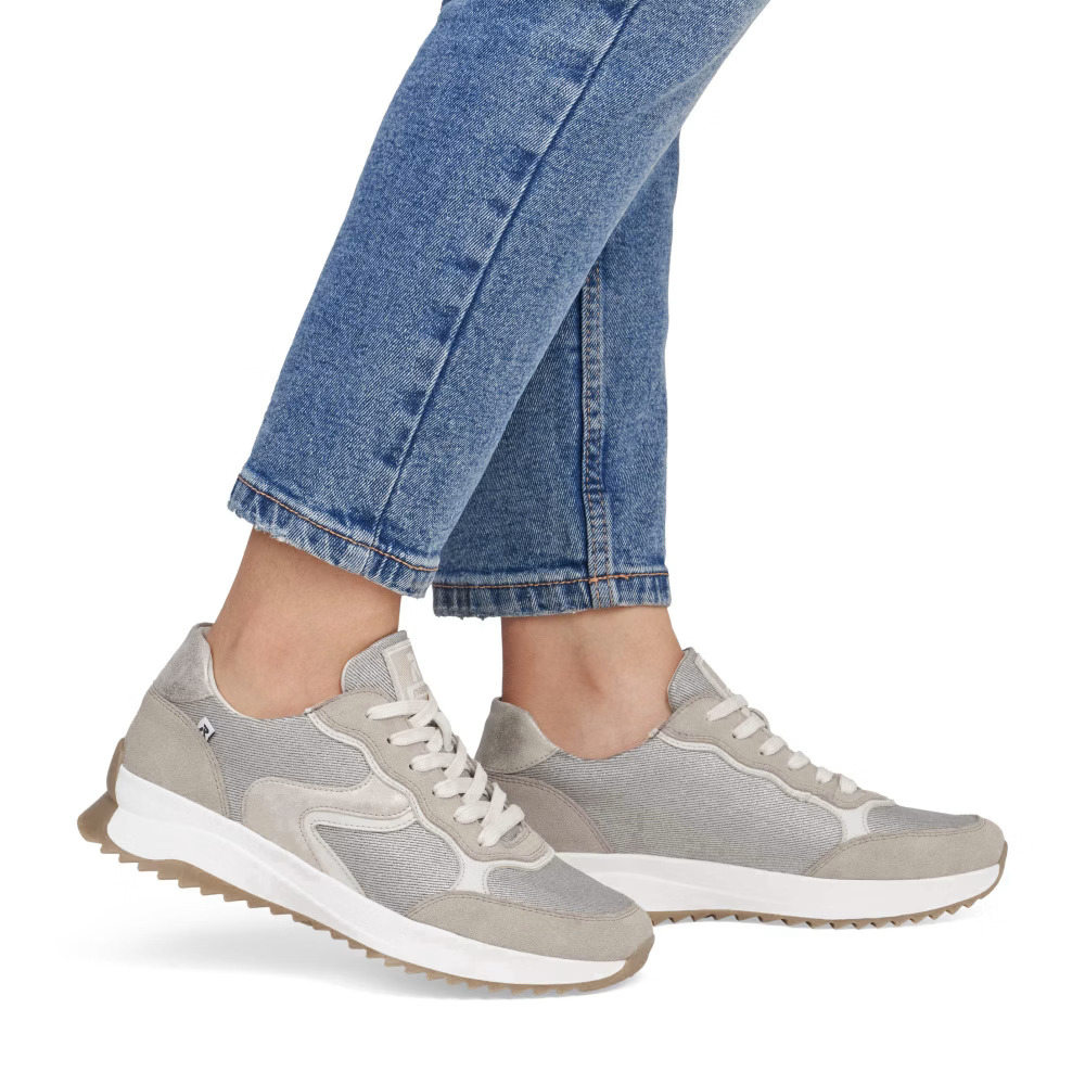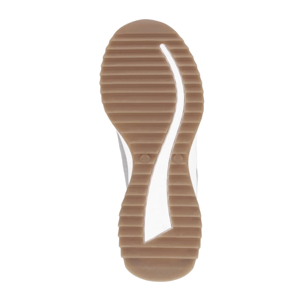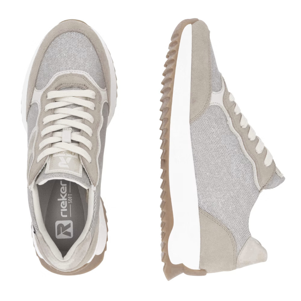 Élvezze a sportos stílust a RIEKER tornacipőkkel, amelyek eleganciát és kényelmet kínálnak egyetlen modellben. Egyedi dizájnjuk a bézs árnyalatok harmonikus kombinációján alapul, finom csillogó hatásokkal, amelyek kifinomult megjelenést kölcsönöznek a cipőnek. A fűzős kialakítás lehetővé teszi a tökéletes illeszkedést, míg a kivehető, puha talpbetét maximális kényelmet biztosít egész napos viselet során. A párnázott talp hatékonyan elnyeli az ütéseket, így minden lépés kényelmesebbé válik. Ezek a tornacipők ideális választást jelentenek mindennapi használatra, hiszen divatos megjelenést és kimagasló komfortot kínálnak, tökéletesek egy aktív életmódhoz.