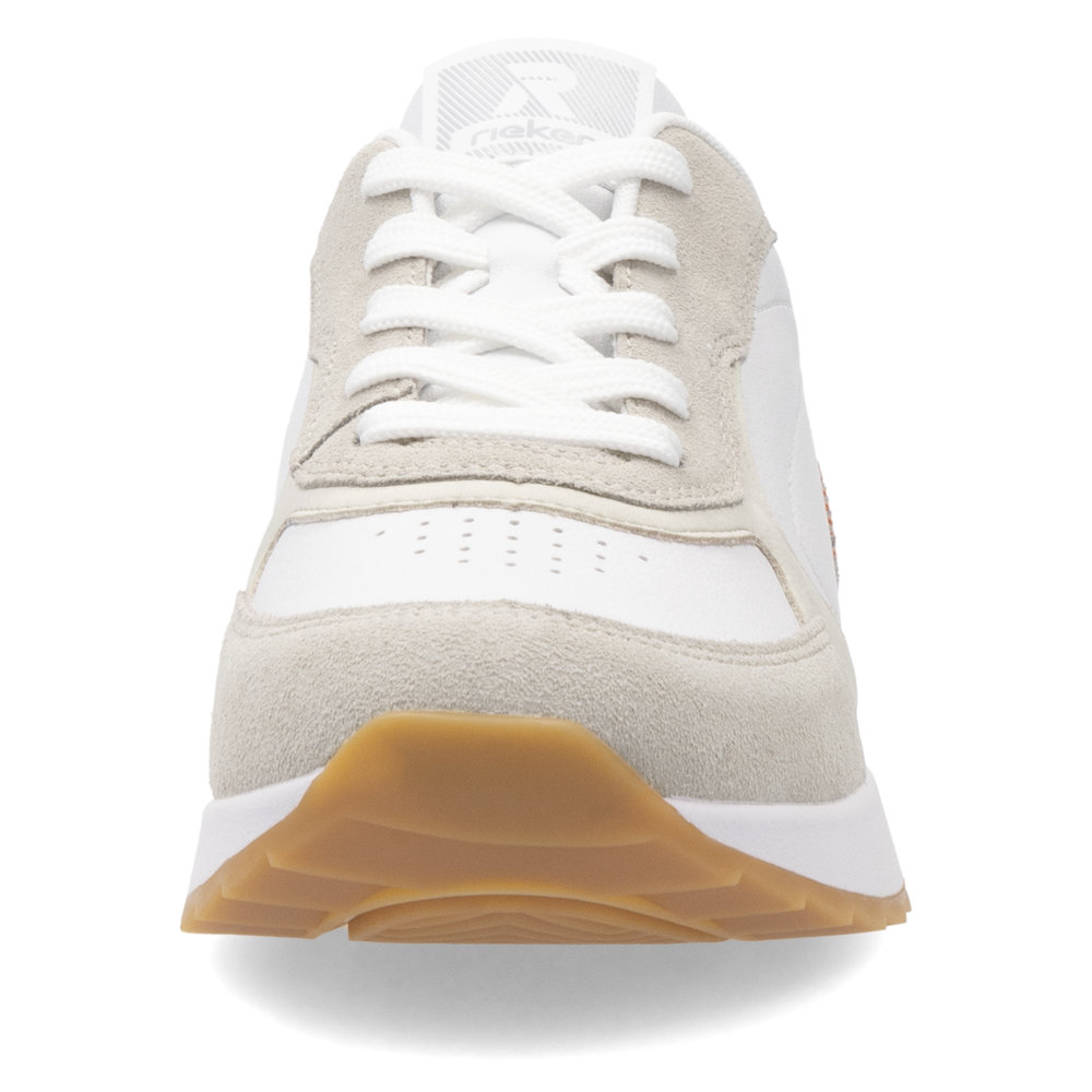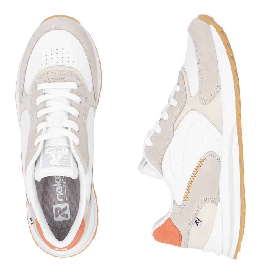 A Rieker W2400-80 fehér női bőr tornacipő a stílust, a kényelmet és a minőséget ötvözi egyben. Puha, valódi bőrből készült felsőrészük nemcsak elegáns megjelenést, hanem nagy tartósságot és a láb formájához való alkalmazkodóképességet is biztosít. Könnyű konstrukciójuknak és légáteresztő feldolgozásuknak köszönhetően ideálisak egész napos viselethez, akár városban, akár munkahelyen, akár szabadidős tevékenységekhez. A cipő praktikus fűzővel van ellátva, amely lehetővé teszi az egyszerű beállítást, valamint rugalmas talppal, amely elnyeli az ütéseket és stabilitást biztosít különböző felületeken. A Rieker W2400-80 megfelel a magas kényelmi követelményeknek, az anti-stressz technológia pedig könnyű és kényelmes lépést tesz lehetővé. Kiváló választás a mindennapi elegáns stílushoz.
