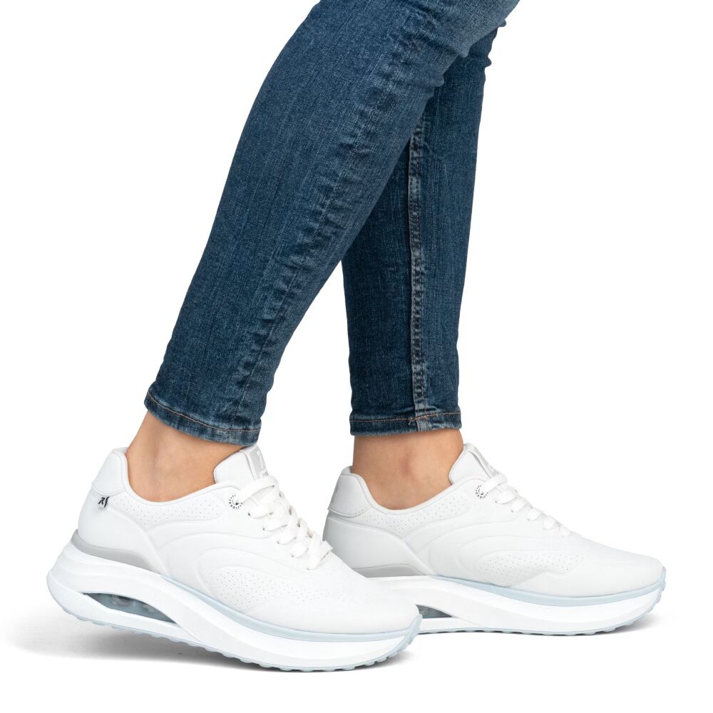 Ez a fehér RIEKER sportcipő ötvözi a modern dizájnt és a maximális kényelmet, így tökéletes választás a mindennapi viselethez. A felsőrész elegáns vonalai és finom perforált mintázata egyedi megjelenést kölcsönöz a cipőnek, míg a masszív talp beépített légpárnával biztosítja a lépések optimális párnázását. A fűzős kialakítás pontos illeszkedést és stabilitást nyújt, míg a kivehető, puha talpbetét fokozott kényelmet garantál. Az Antistress technológiának köszönhetően a talp könnyű, rugalmas és tökéletesen elnyeli az ütéseket. Ez a modell vegán anyagokból készült, így ideális választás mindazok számára, akik stílusos, funkcionális és egyben etikus lábbelit keresnek. A RIEKER Sport az innovatív kialakítás és a maximális kényelem tökéletes egyensúlyát kínálja – lépésről lépésre.