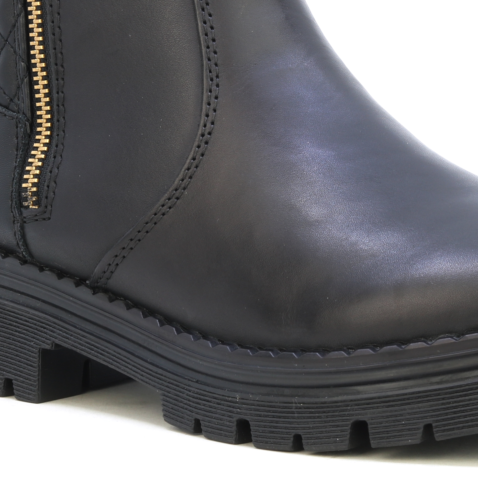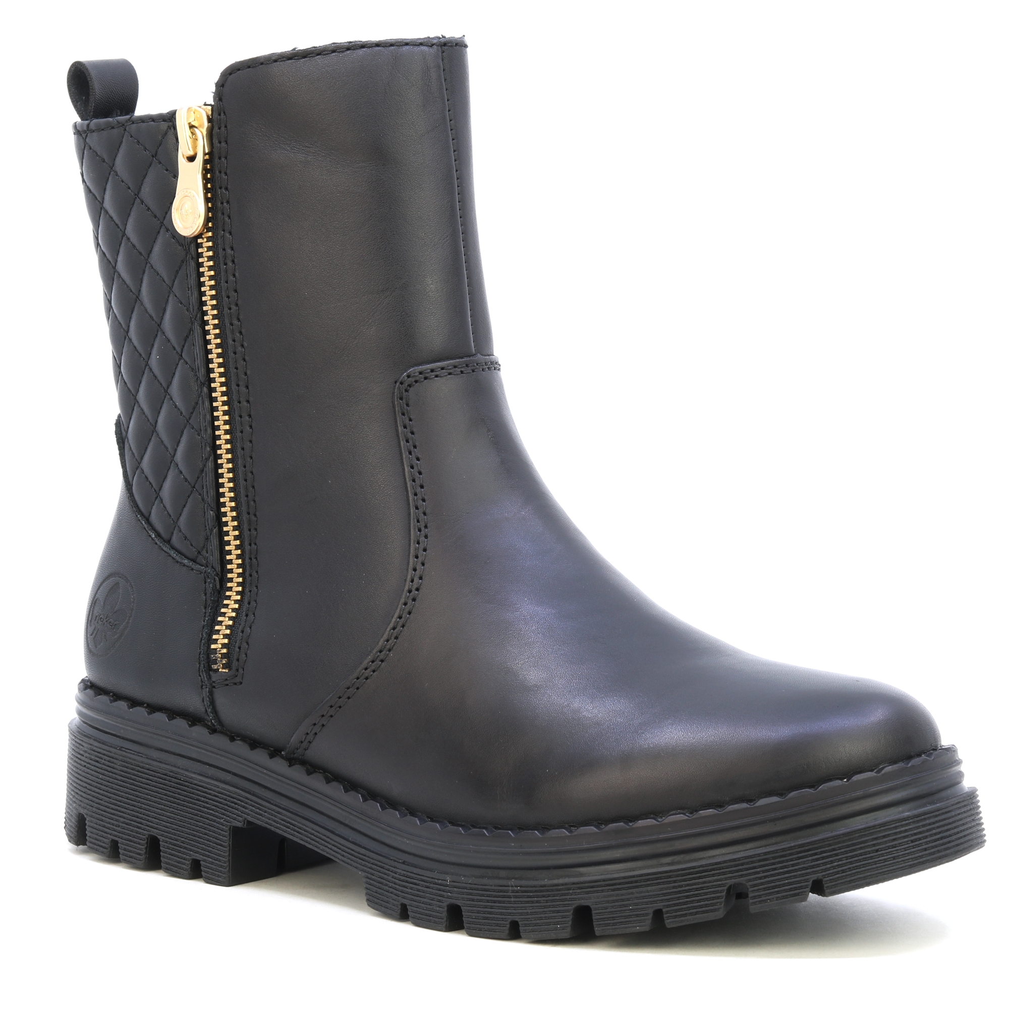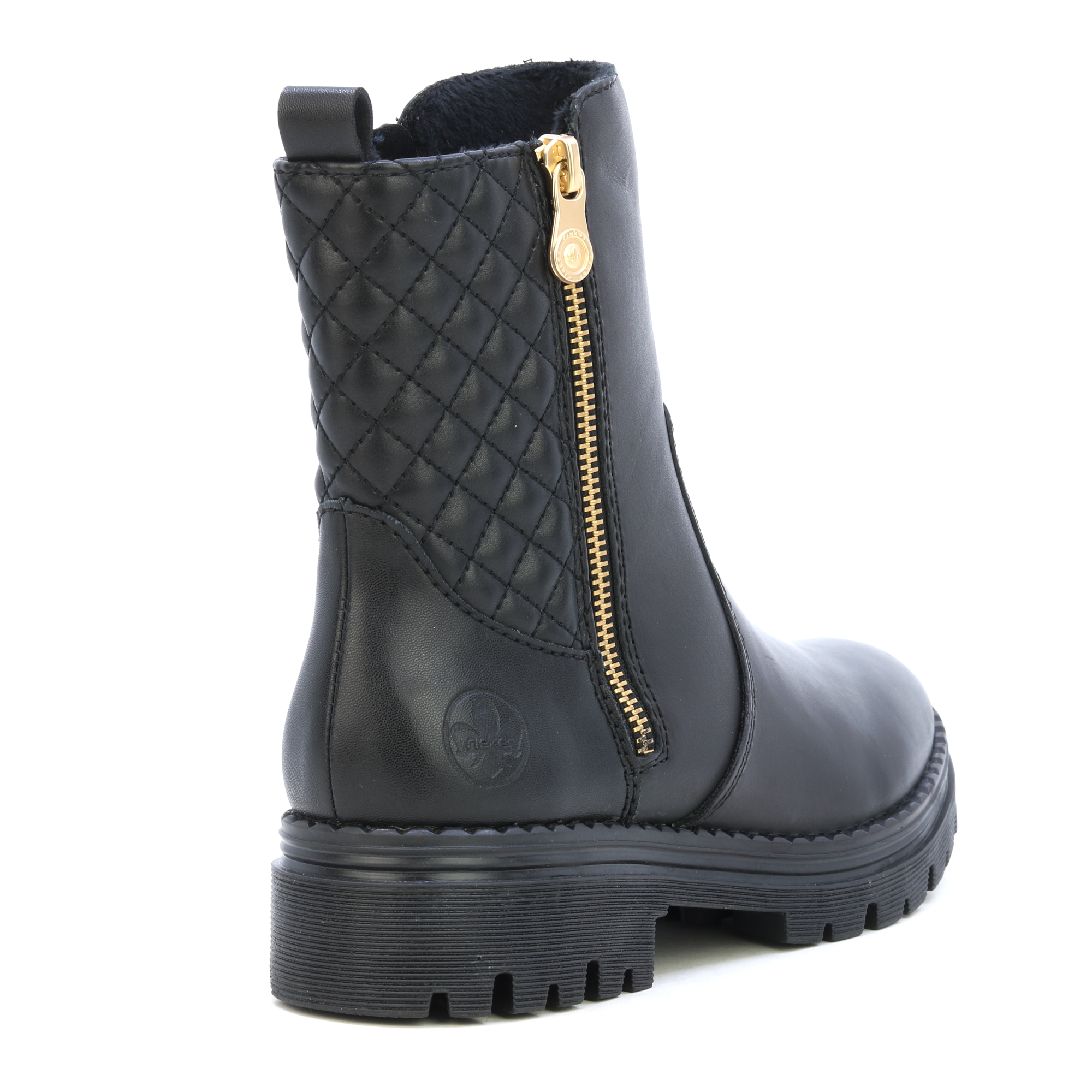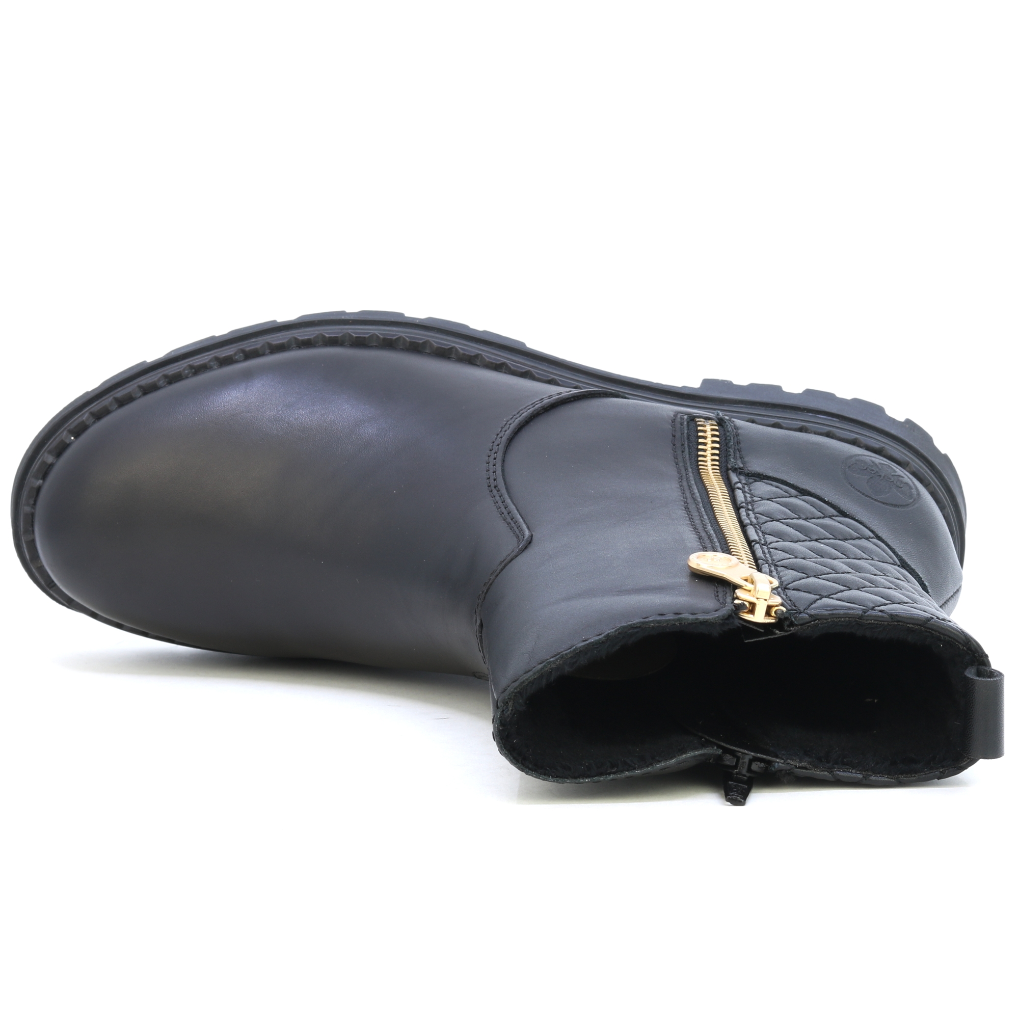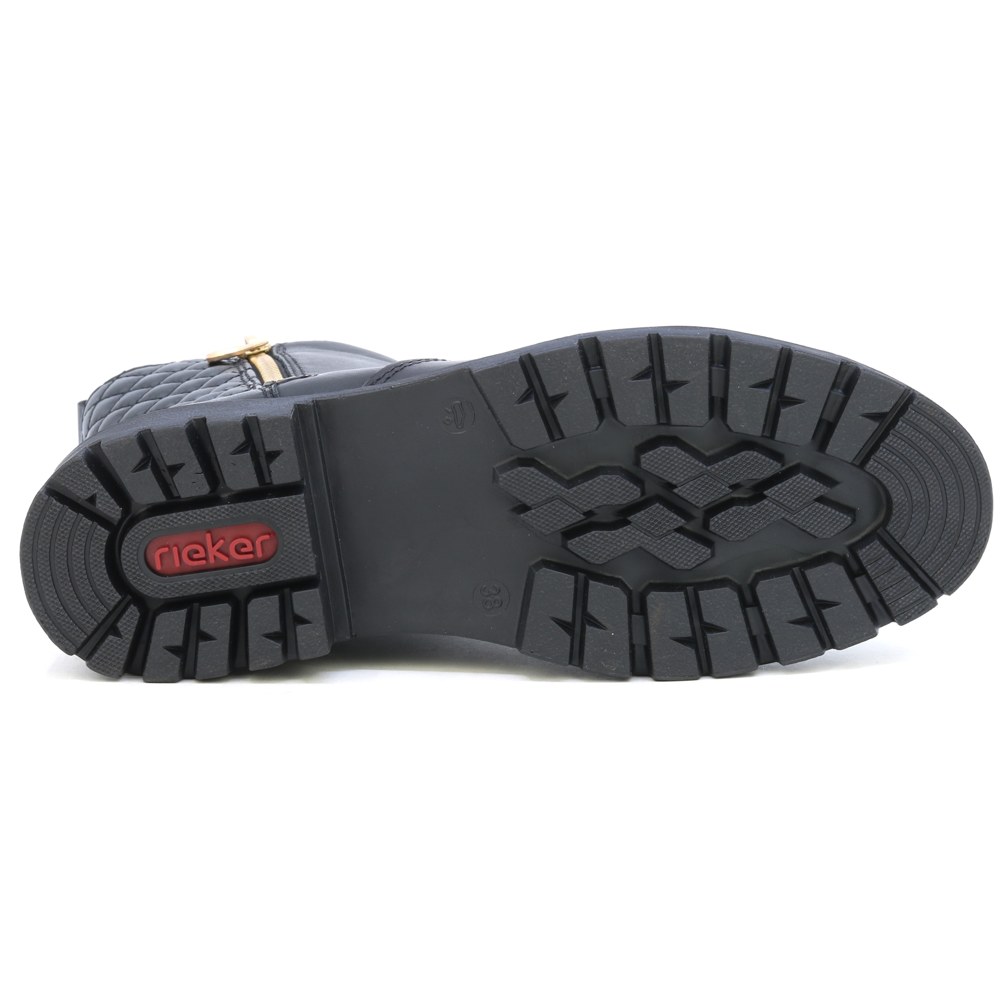 A RIEKER Z8551-00 fekete női téli csizma elegáns és kényelmes választás a hideg napokra. Ezt a stílusos téli cipőt a kényelem és a melegség hangsúlyozásával tervezték, így ideális városi környezetben és hosszabb sétákhoz is. A műszőrme szigetelésének köszönhetően még fagyos napokon is kellemesen melegen tartja a lábát. A felsőrész kiváló minőségű szintetikus bőrből készült fekete színben, amely modern megjelenést kölcsönöz a cipőnek, ugyanakkor ellenáll a nedvességnek és a szennyeződéseknek. A finom mintázatú talp jó tapadást biztosít különböző típusú felületeken, amit különösen téli körülmények között fog értékelni. A belső praktikus cipzáras záródás megkönnyíti a fel- és levételt, a klasszikus fűzés pedig finom stíluselemet ad a cipőnek, és jobb illeszkedést tesz lehetővé a lábfejhez.