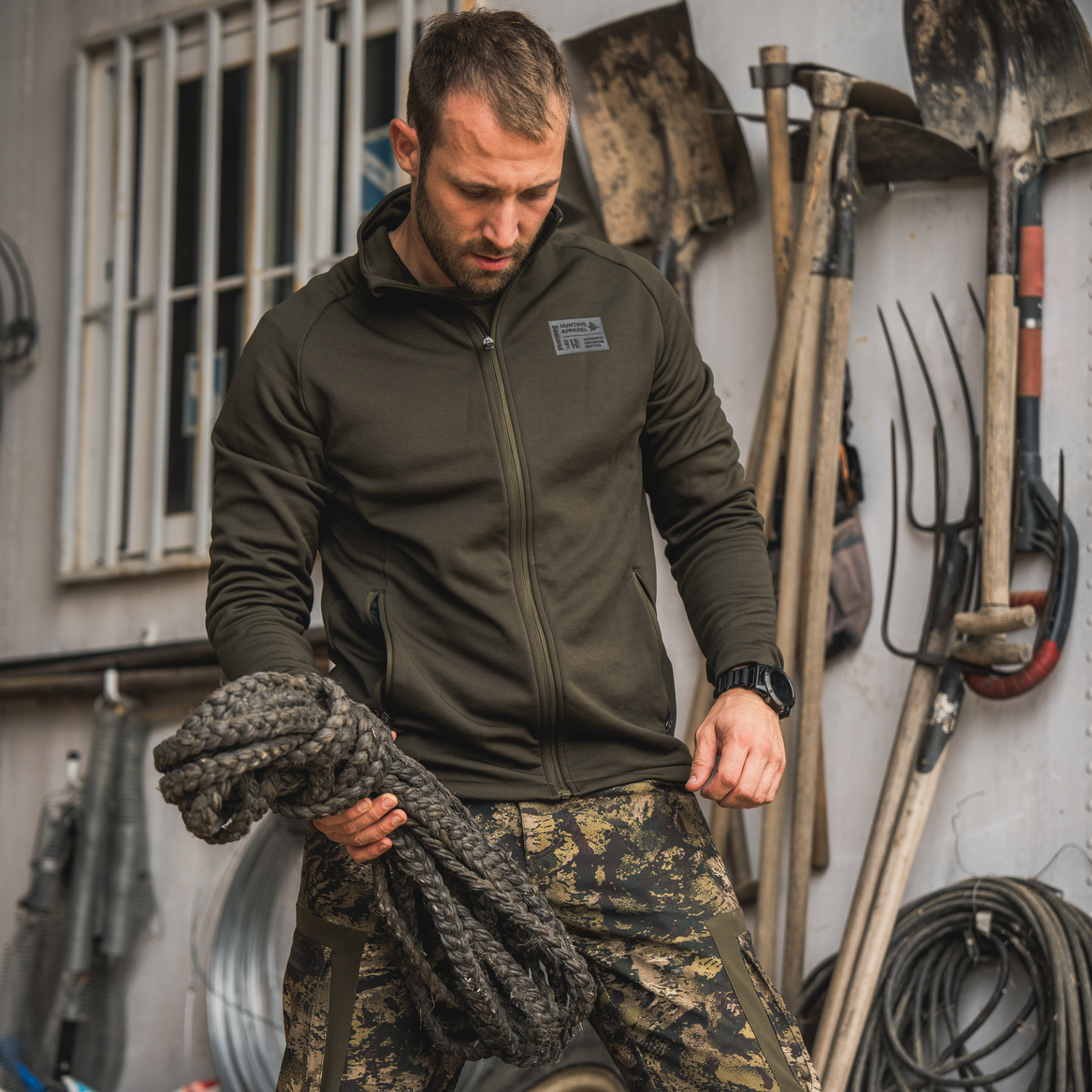 A Tidal Fleece Jacket polárkabát könnyű, jól szellőző és kényelmes viseletet kínál szabadtéri tevékenységekhez és mindennapi használatra egyaránt. A négyirányú rugalmasságnak köszönhetően a kabát követi a mozgást, így maximális szabadságot biztosít túrázás vagy aktív időtöltés közben. A jersey fleece anyag puha, bolyhozott belső oldala kellemes meleget nyújt anélkül, hogy túlmelegedést okozna. Az elöl végigfutó cipzár megkönnyíti az öltözködést és a hőmérséklet szabályozását, míg a cipzáras oldalzsebek biztonságos tárolást tesznek lehetővé. A visszafogott kialakítás természetesen illeszkedik a környezetbe, a mellkason és a hát közepén elhelyezett logó pedig diszkrét megjelenést ad. Körülbelül 0,56 kg-os súlyával a kabát ideális társ túrázáshoz, vadászathoz és szabadidős programokhoz.