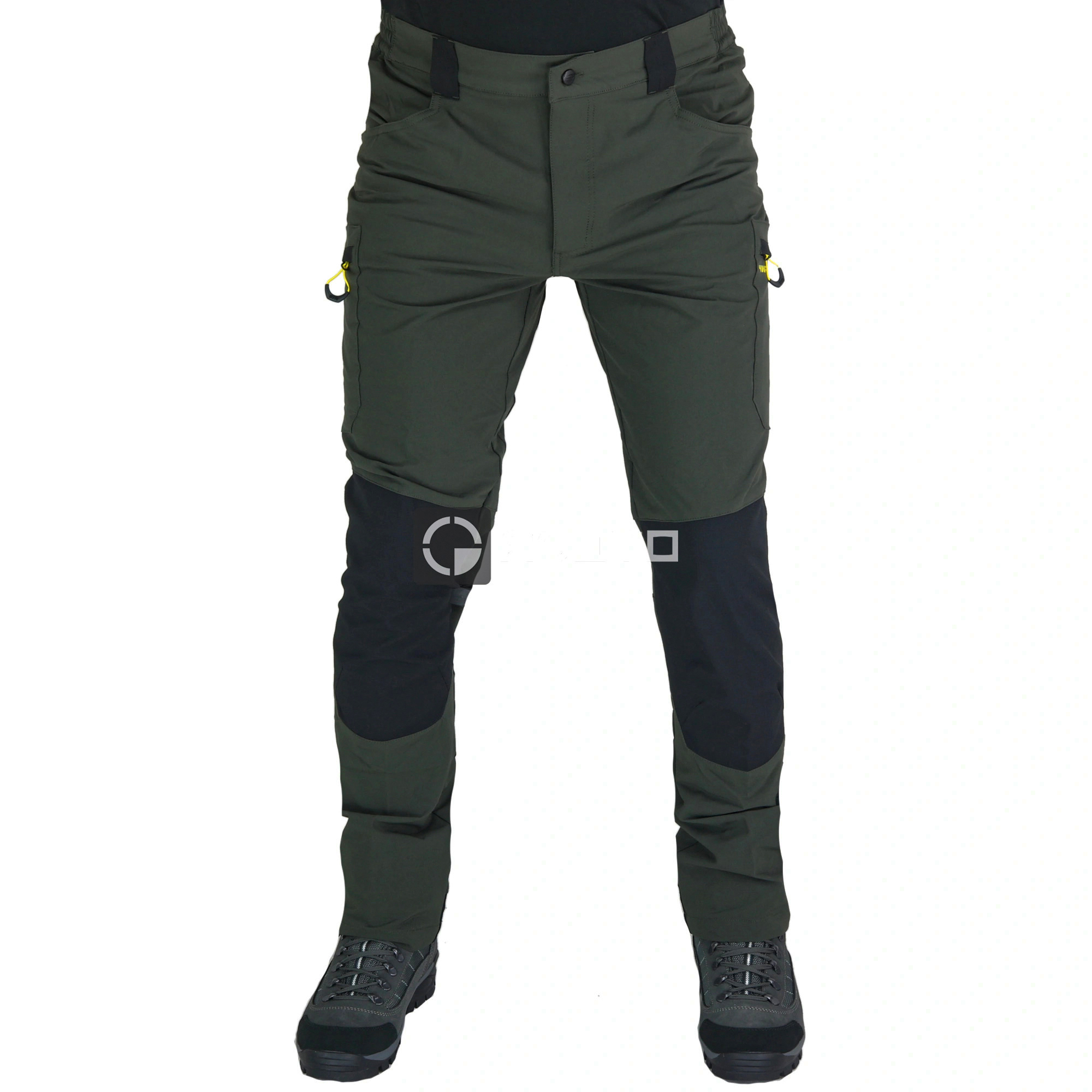 Bi-sztreccs anyagú nadrág 90% poliészter, 10% spandex, kationos stretch ripstop erősítőanyag 94% poliészter és 6% spandex, 240 g/m2. Vízlepergető felület. Cipzáros és szegecses rögzítéssel, két elülső zsebbel, két foltos zsebbel, rejtett cipzárral. Fékbetéttel és tépőzárral záródó hátsó zsebek, derékrészben elasztikus oldalsó beékelődések, előformázott térd. Ergonomikus szabású a nadrág hátulja, térdnél erősítés, a szárak alján megerősített sarok. Dupla megerősített varratok. A 4-Way Stretch sorozat a könnyedséget és a légáteresztő képességet ötvözi.