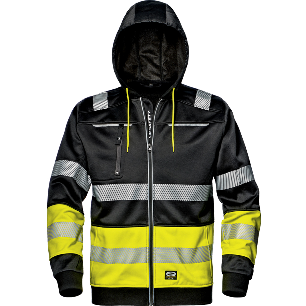65% poliészterből és 35% pamutból készült pulóver 300 g/m2 tömeggel. Elöl cipzárral, húzózsinórral állítható kapucnival, a mellkas jobb oldalán cipzáras kis zsebbel és oldalzsebekkel rendelkezik. Hőszigetelt szegmentált fényvisszaverő csíkokkal van ellátva a vállakon, a mellkason, a derékrészen és az ujjakon. A mandzsetta és a szegély bordázott kötött anyagból készült, amely 55% pamut és 45% poliészter. A terméket az (EU) 2016/425 rendeletnek megfelelően tervezték és gyártották. A pulóver mindennapi viseletre is alkalmas rossz látási viszonyok között.