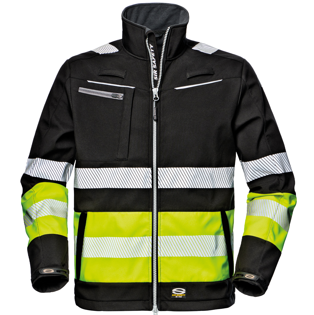 Ez a férfi softshell kabát erős Ripstop 75D Stretch anyagból készült, amelyet 100% poliészter, rácsos mikro polár béléssel lamináltak, 320 g/m2 súlyban. Az anyag kombinálja a nagy szakítószilárdságot a kellemes meleggel és kényelmes viselettel. A kabát központi cipzáras záródással, jobb oldali mellzsebbel és rejtett kártyatartóval rendelkezik, ami különösen előnyös terepi munkavégzés során. Két alsó zseb szolgál a kéz melegen tartására vagy apróságok tárolására, míg a mellkason, az ujjakon és a vállakon elhelyezett fényvisszaverő szalagok hőragasztott és szegmentált kialakításúak, így biztosítják a láthatóságot és a mozgásszabadságot. A kontrasztos sárga betétek az ujjakon és a derékrészen a mellkason futó fényvisszaverő elemekkel együtt fokozzák a biztonságot és modern megjelenést kölcsönöznek. A ruházat az (EU) 2016/425 rendeletnek megfelelően készült, és teljesíti az EN ISO 20471 szabvány 1. osztályának követelményeit, amely legalább 0,14 m2 fluoreszkáló és 0,10 m2 fényvisszaverő anyagot ír elő. Ez a softshell kabát ideális választás olyan munkakörnyezetbe, ahol fontos a fokozott láthatóság, ugyanakkor a kényelem, a tartósság és a funkcionális kialakítás is elsődleges szempont.