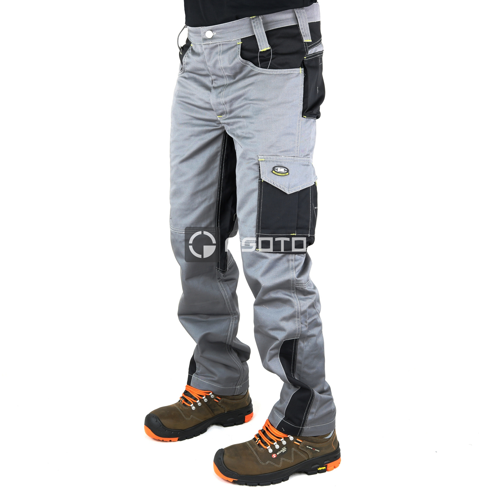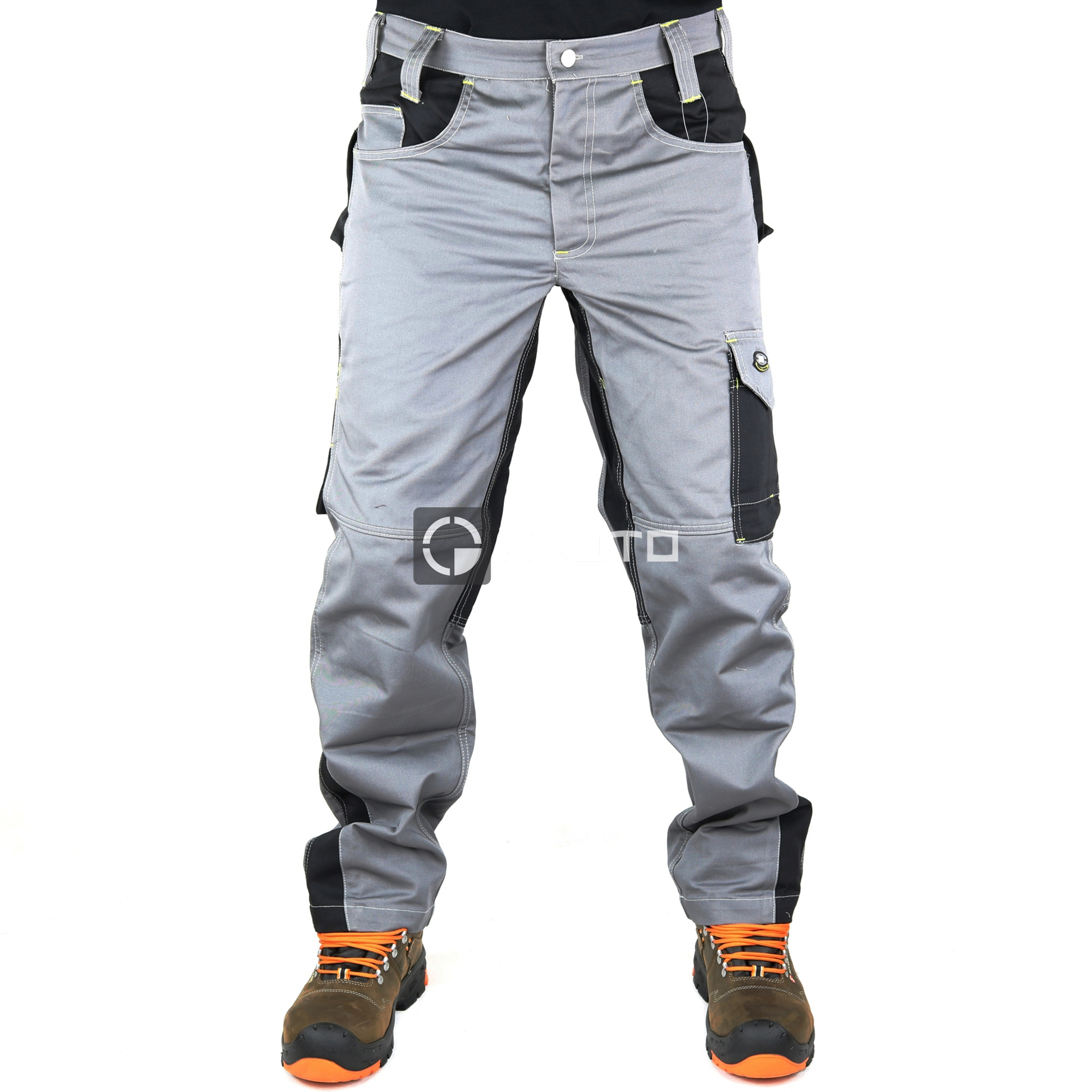 Kalhoty ze 100% bavlněné tkaniny Massaua, hmotnost 280 g / m2. Zapínání na zip a knoflík, dvě horní kapsy s kapsou na mince na pravé straně, kapsa na pravítko s držákem nářadí na pravé noze, multifunkční užitková kapsa s klopou a suchý zip s držákem na pero a kapsou na telefon na levé noze, pravá zadní kapsa s klopou a suchý zip, zadní levá kapsa se suchým zipem.