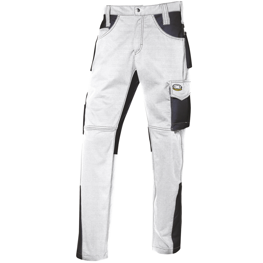 Kalhoty ze 100% bavlněné tkaniny Massaua, hmotnost 280 g / m2. Zapínání na zip a knoflík, dvě horní kapsy s kapsou na mince na pravé straně, kapsa na pravítko s držákem nářadí na pravé noze, multifunkční užitková kapsa s klopou a suchý zip s držákem na pero a kapsou na telefon na levé noze, pravá zadní kapsa s klopou a suchý zip, zadní levá kapsa se suchým zipem.