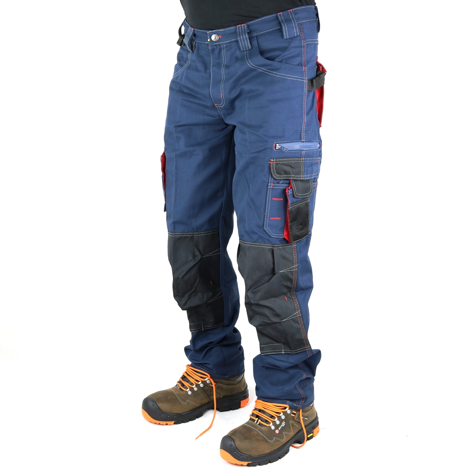 Více kapesní kalhoty vyrobené ze 65% polyesteru a 35% keprové bavlny, hmotnost 300 g / m2. Má dvě přední kapsy, dvě zadní kapsy z otěruvzdorné tkaniny s klopou a knoflíkem. Na pravé straně: dvojitá kapsa na metr, D-kroužek, multifunkční užitková kapsa s klopou a suchým zipem a držák na pero. Na levé straně: tkaninový kroužek na držáky nástrojů nad kapsami, jeden se zapínáním na zip a druhý s klopou a suchým zipem. Vyztužení proti opotřebení na kapsách chrániče kolen; spárované švy, dvojité švy, červené detaily a černé vložky Cordura.