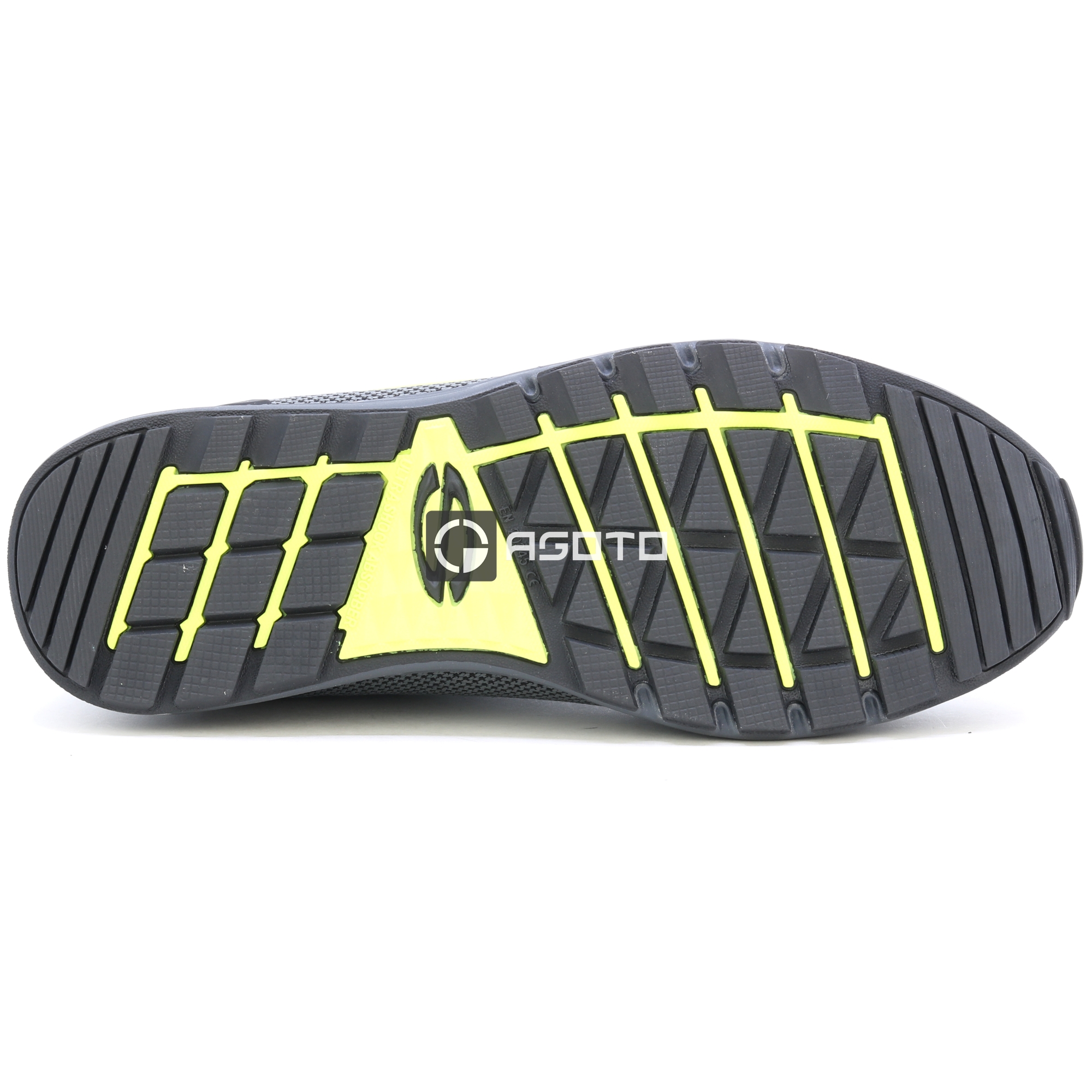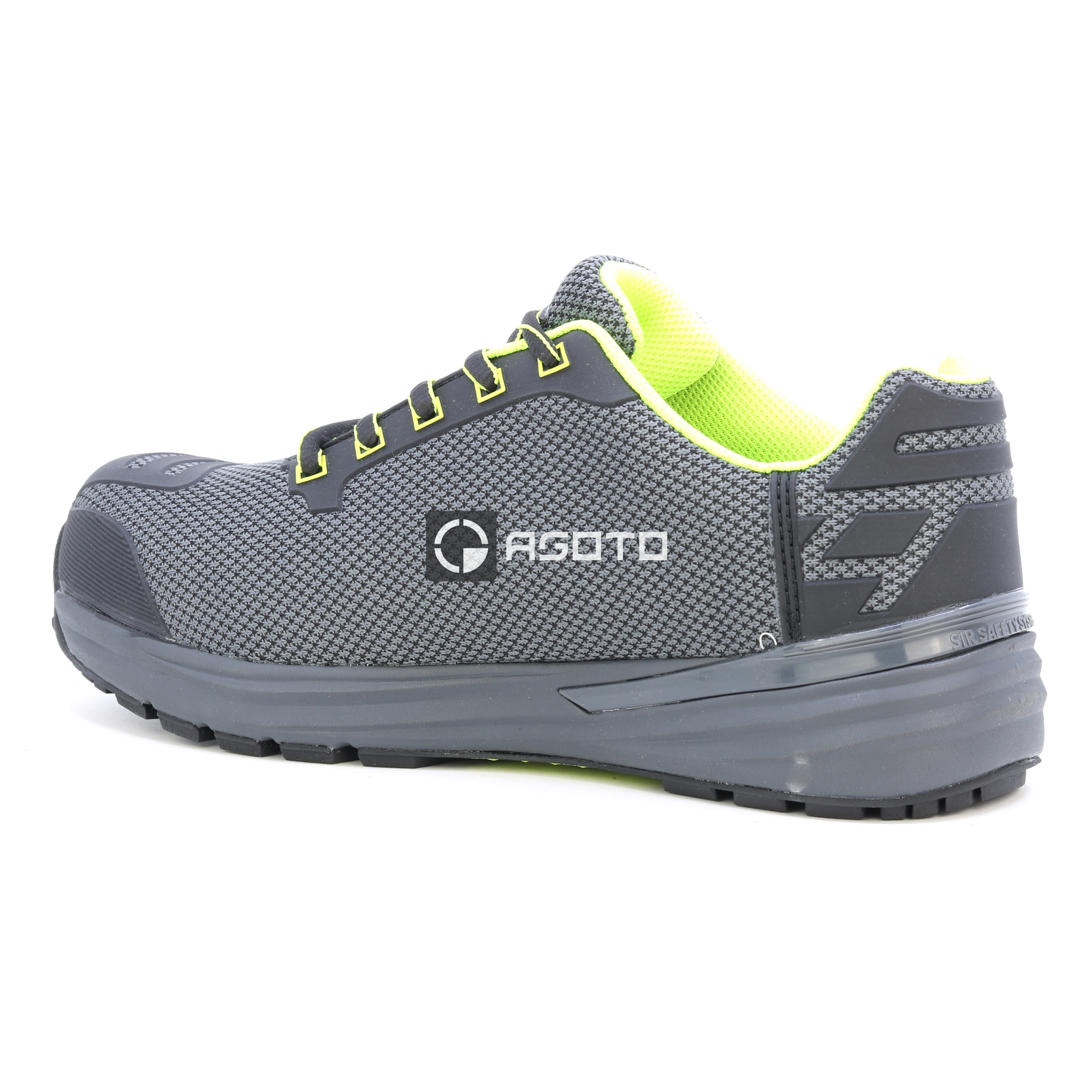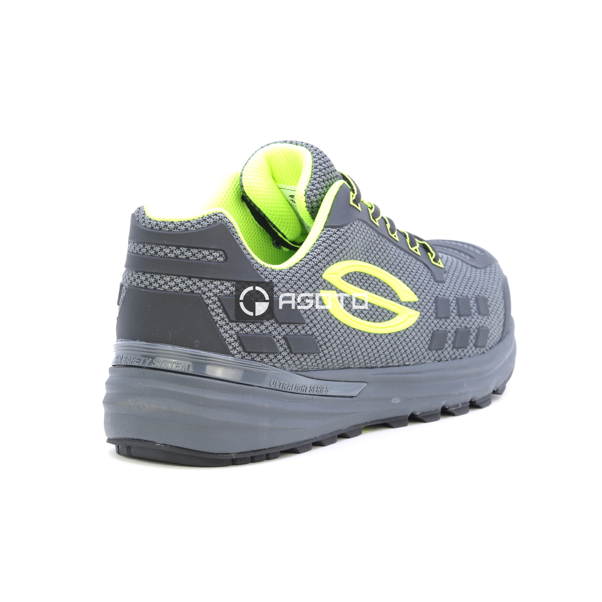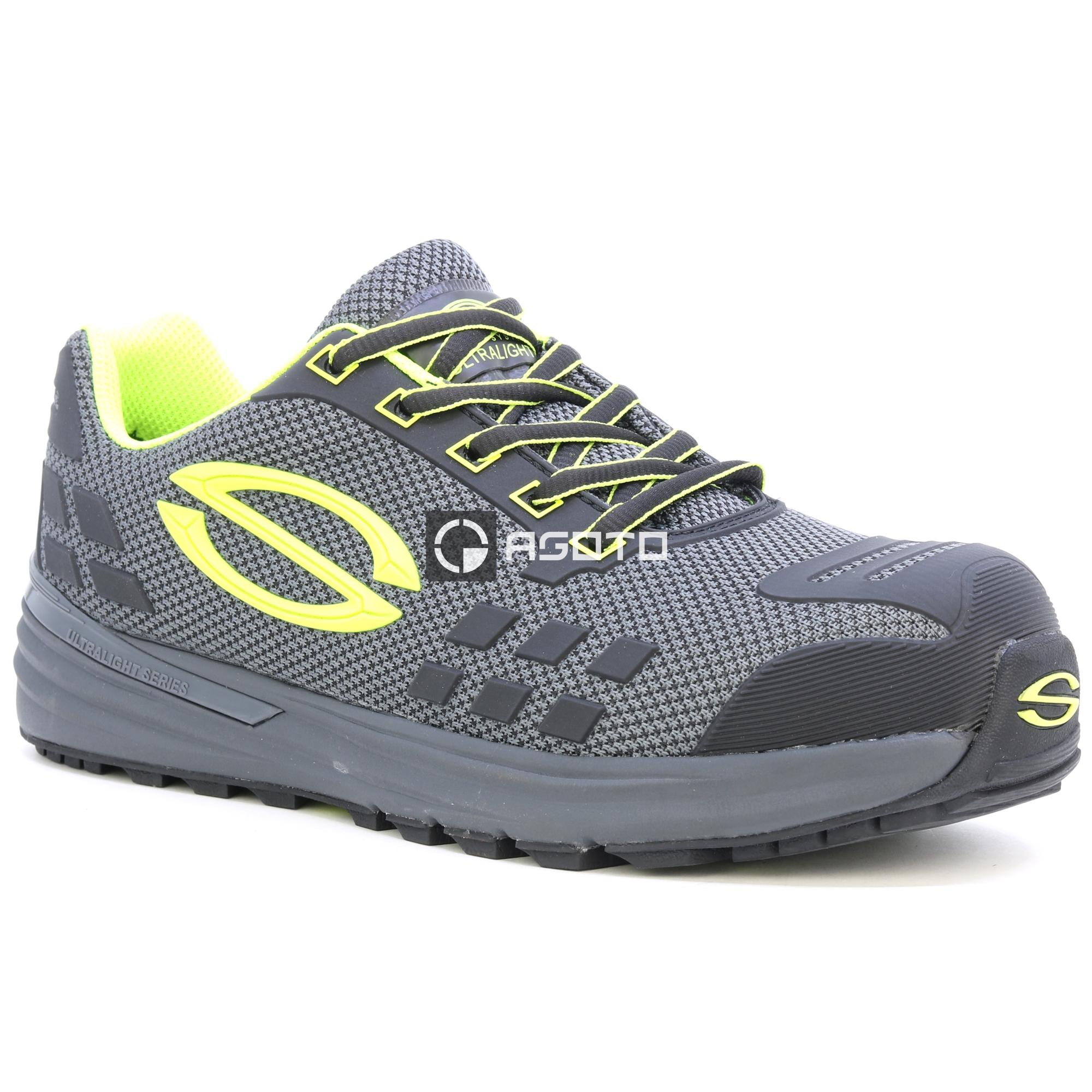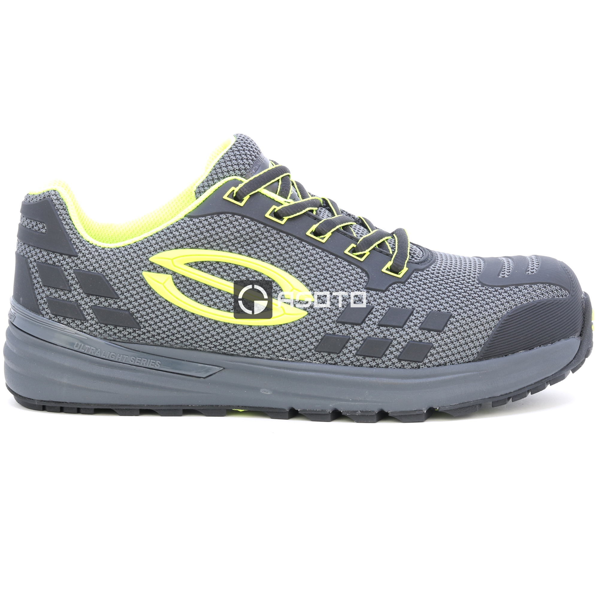 Kopás- és szakadásálló poliészter hálóból készült, prémium varrat nélküli felsőrésszel ellátott munkacipő. Nem fém. Üvegszálas orrvédő és kompozit középtalp, állandó 4 mm vastagsággal. S1P.