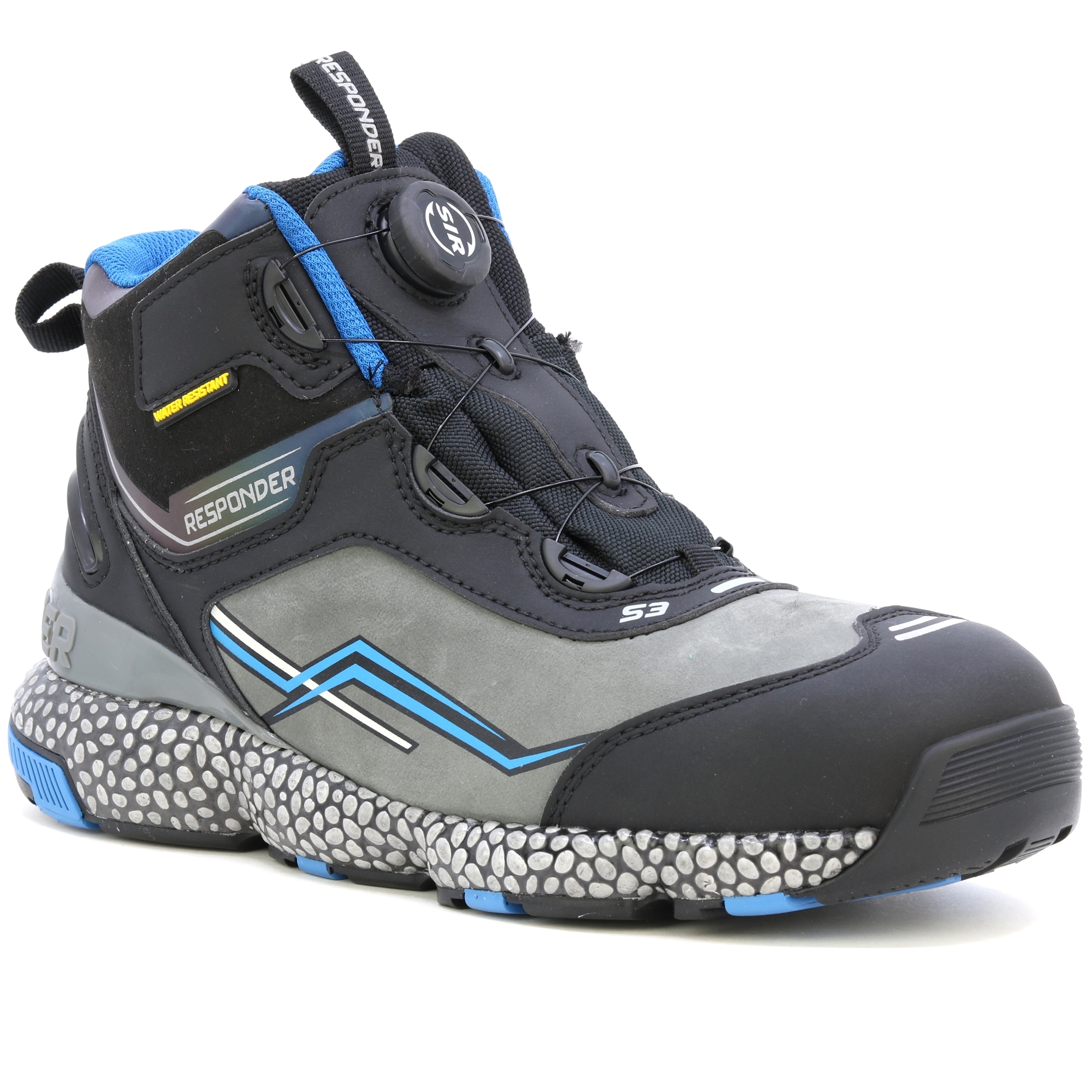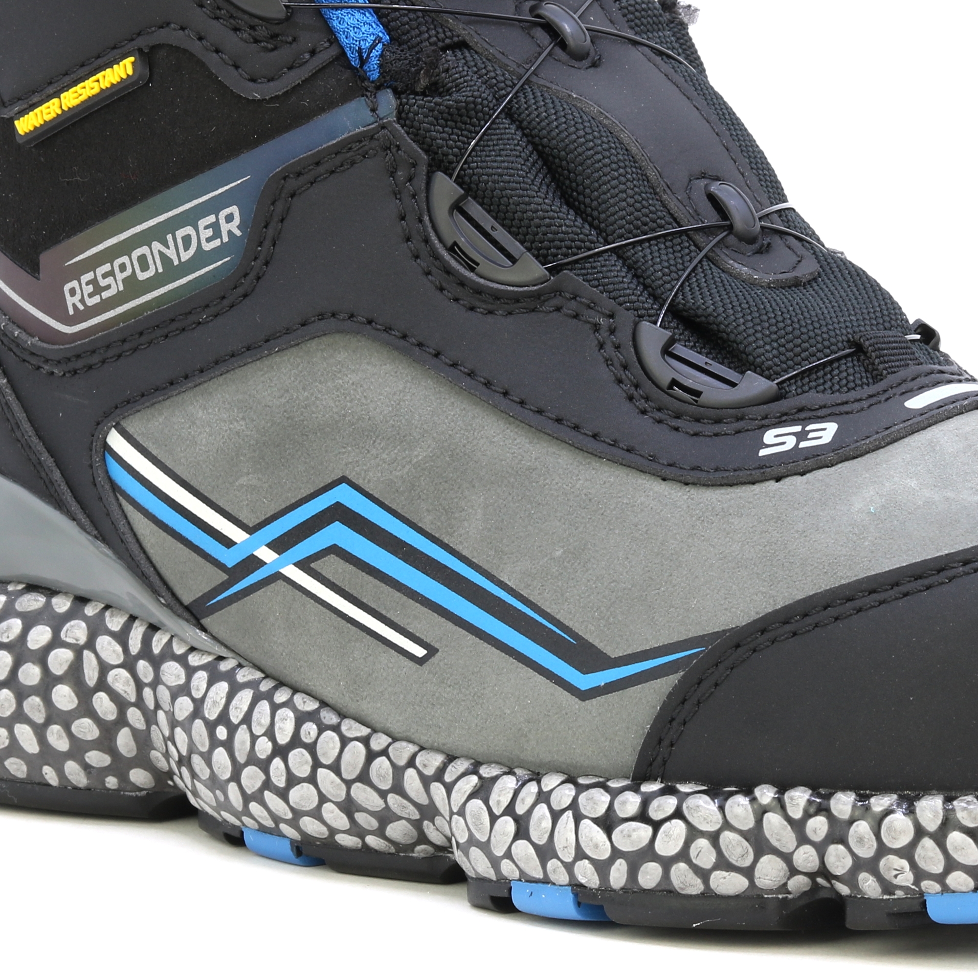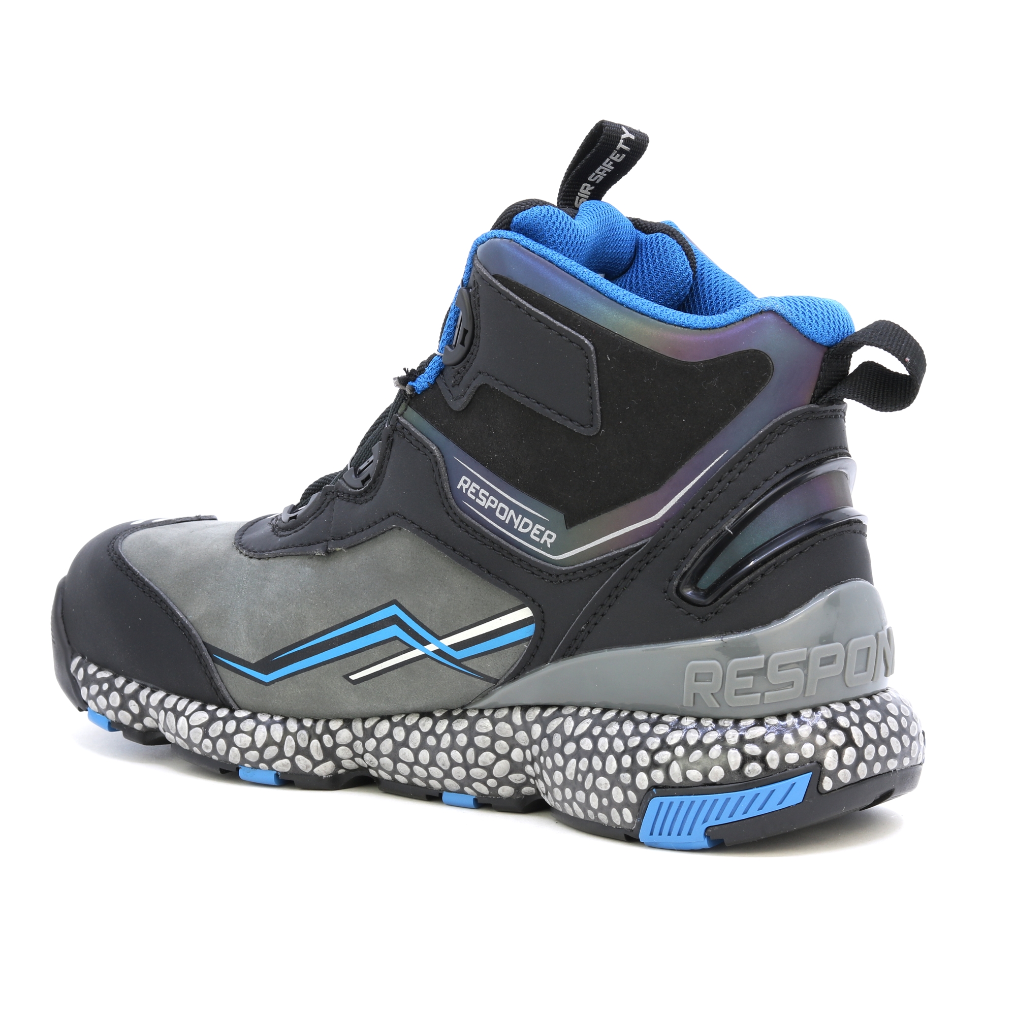 FIGYELEM! Rendkívül könnyű és kényelmes munkavédelem. A Responder szabadalmazott rendszer olyan érzést nyújt, mintha habos papucsban járnánk, miközben garantálja, hogy még egész napos viselés után sem érezzük a fáradtságot! Alacsony munkavédelmi cipő ultradinamikus kialakítással, alumínium orr véddel és 4 mm vastag kompozit középtalppal. Action Nubuk bőr felsőrésszel, cipőfűzővel és reflexbetétekkel felszerelve. Az E-TPU Responder/rugalmas talp kiváló rugalmasságot és csillapító hatást nyújt: az expandált termoplasztikus poliuretán középtalp teljesen beborítja a lábat, rugalmasságot és teljesen érzékeny csillapítást nyújtva. A gumi talp mély hosszanti barázdái kiemelik a talp rugalmasságát és kiváló tapadást biztosítanak mindenféle felületen. A RESPONDER középtalp egy olyan keverékből áll, amely összekapcsolja a magas rugalmasságú és ellenálló képességű E-TPU gyöngyöket. A bélés és a talpbetét plantáris régiója kiválóan ütéscsillapító tulajdonságokkal rendelkezik. Antisztatikus. A poliészter hálós bélés kiváló vízelvezető képességgel rendelkezik a szövet és a magas felszívóképességű szerkezet miatt. Fő jellemzők: A RESPONDER szabadalmaztatott technológiája kiváló érzékeny csillapítást, rendkívüli könnyűséget és rugalmasságot nyújt a láb teljes felületén, biztosítva a kiváló teljesítményt hosszú távú és intenzív használat után is. A sarokstabilizátor megakadályozza a láb fáradását és javítja a láb stabilitását.