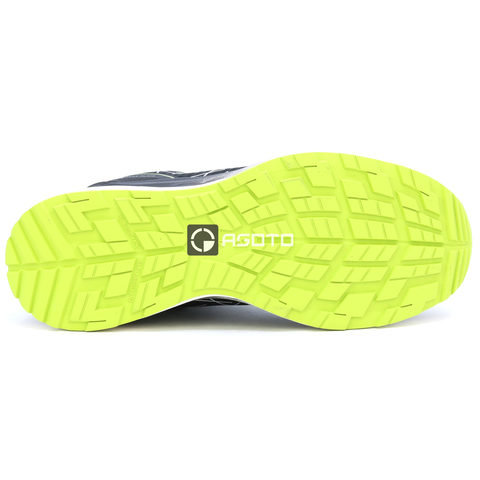 Ez az alacsony, fémmentes munkavédelmi cipő modern biztonsági technológiákat és kiváló kényelmet kínál. A nanotechnológiás üvegszálas orrvédelem és az ultrakönnyű, rugalmas NWT középtalp (PS típusú nem szőtt anyag) maximális védelmet nyújt alacsony súly mellett. A strapabíró nylon felsőrész hosszú élettartamot és légáteresztő képességet biztosít. Az Air-mix anatómiai EVA talpbetét perforált szerkezettel és változó vastagsággal (3 mm elöl, 10 mm a saroknál) hatékonyan csillapítja az ütéseket, csökkenti a láb fáradtságát, és cserélhető a higiénia fenntartása érdekében. Antisztatikus tulajdonságai fokozzák a biztonságot. A DRY PLUS sűrű szövésű poliészter bélés sarokrész-védelemmel hatékonyan vezeti el a nedvességet és csökkenti a láb túlmelegedését hosszabb viselés esetén. Az EVA Super Foam/Rubber talp kiváló tapadást biztosít még nedves felületeken is, és ellenáll a szénhidrogéneknek. A cipő megfelel az EN ISO 20345 (S3S HRO FO SR) és EN 61340 szabványoknak, valamint az (EU) 2016/425 rendelet követelményeinek.