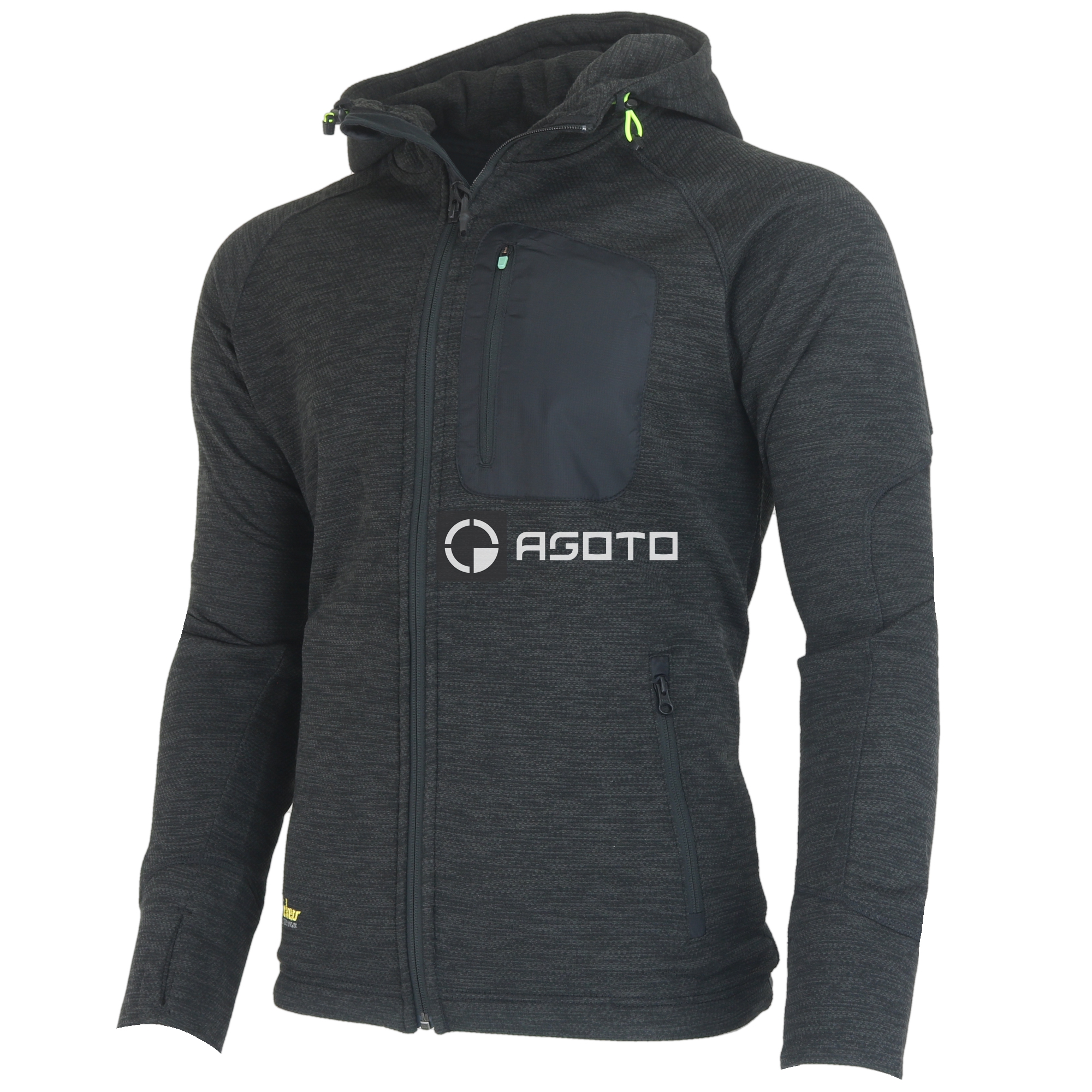 A modern strukturált anyag légáteresztőt és érdekes megjelenést kölcsönöz a pulóvernek. Elasztikus anyagának és ergonomikus szabásának köszönhetően tökéletesen illeszkedik. Extra légáteresztő strukturált gyapjú. Pulóvernek és kabátnak is megfelelő. Belül szálcsiszolt szövet. A mandzsettákban hüvelykujj hurkok. Állítható kapucni és oldalsó cipzáras zsebek. Vízálló mellzseb iratok vagy telefon tárolására.