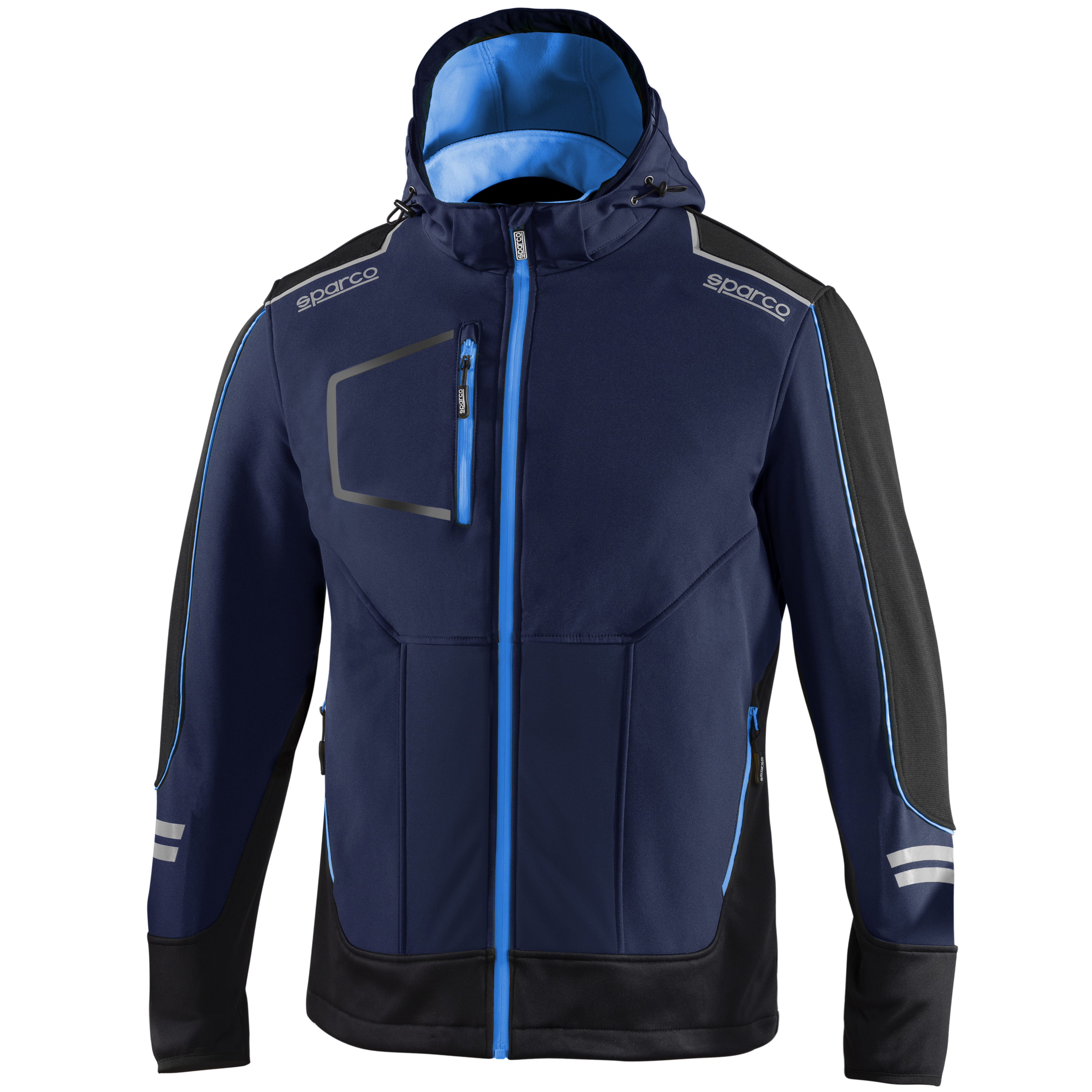 Softshellová bunda Sparco, která je větruodolná a nepromokavá. Je vybavena fleecovou vnitřní podšívkou. Materiál: 94 % polyester - 6 % spandex / 330 g/m2 vnitřní: 100 % polyester (polar fleece) reflexní loga sparco, vyztužené vložky na ramenou, ramena a rukávy z materiálu odolného proti oděru. Potažené voděodolné zipy, boční a náprsní kapsy se zapínáním na zip s vysokou viditelností, reflexní proužky na rukávech, odnímatelná a skládací kapuce s dvojitým nastavením, super strečová tkanina na manžetách, vnitřní nastavitelná podšívka pro maximální přizpůsobení.